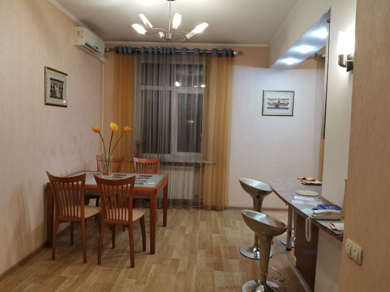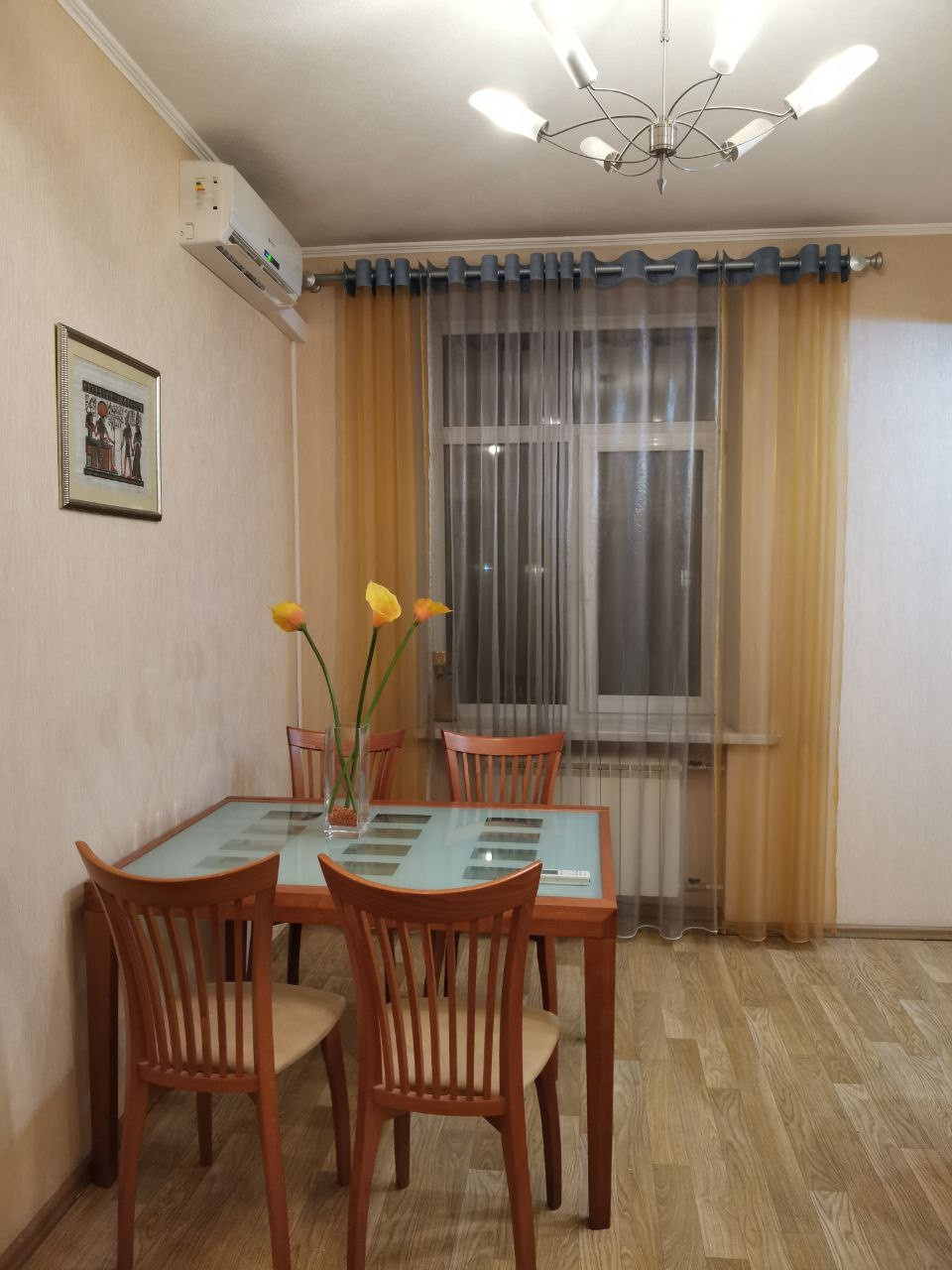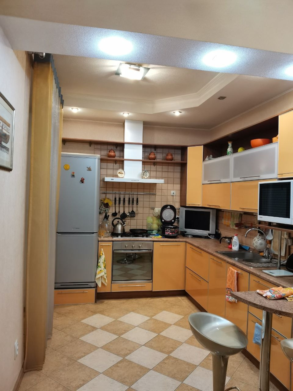 Высота потолков около 3 м. Остается вся мебель и два кондиционера. Состояние хорошее,  можно заезжать и жить. Квартира не угловая,  этаж последний,  крыша отремонтирована. В доме был капитальный ремонт.  Благоустроенный,  зеленый, закрытый двор,  новая детская площадка. Отличная инфраструктура, всё в шаговой доступности. До метро 5 мин., рынок,  магазины,  детские сады,  школы.