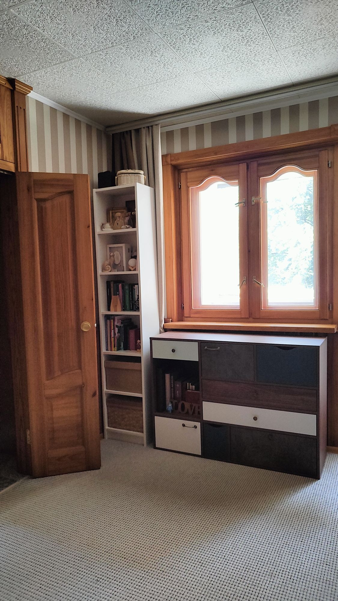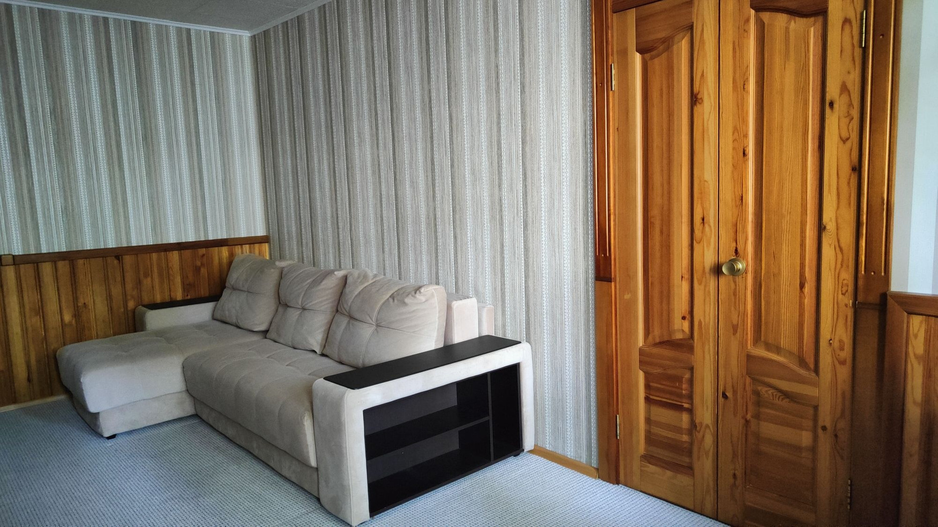 Квартира ухоженная, чистая. Комнаты смежные. Санузел совмещённый. Комнаты со свежими обоями и ковровыми покрытиями. Изюминка квартиры: полная отделка коридора деревянными панелями с тремя потолочными системами хранения, отделка комнат деревянными панелями, двери, окна и балконная дверь из дерева. Дерево в отличном состоянии, смотрится стильно, красиво и очень уютно. Балкон застеклён, с ремонтом, со встроенным шкафом для хранения. Окна выходят на солнечную сторону, в квартире тепло, светло и солнечно, летом поют птички, от летней жары спасает кондиционер в большой комнате, зимой тепло, благоприятный микроклимат в квартире.