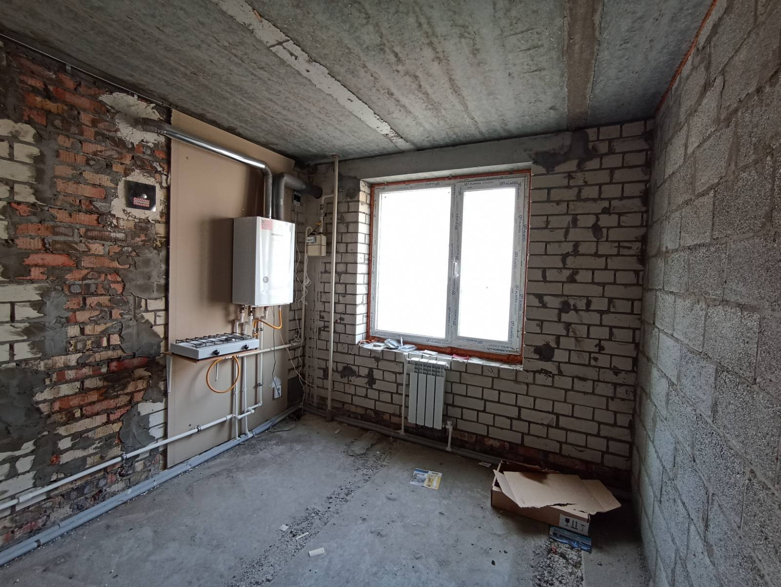 Установлен газовый котел и счетчик на воду.