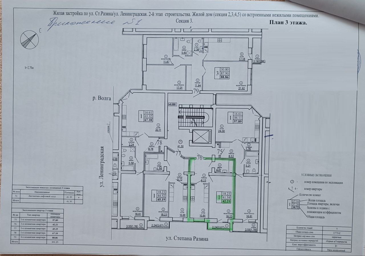 1-комнатная квартира, 42.21 м2, этаж 3 / 9, на продажу в Самаре, улица Степана Разина, 114