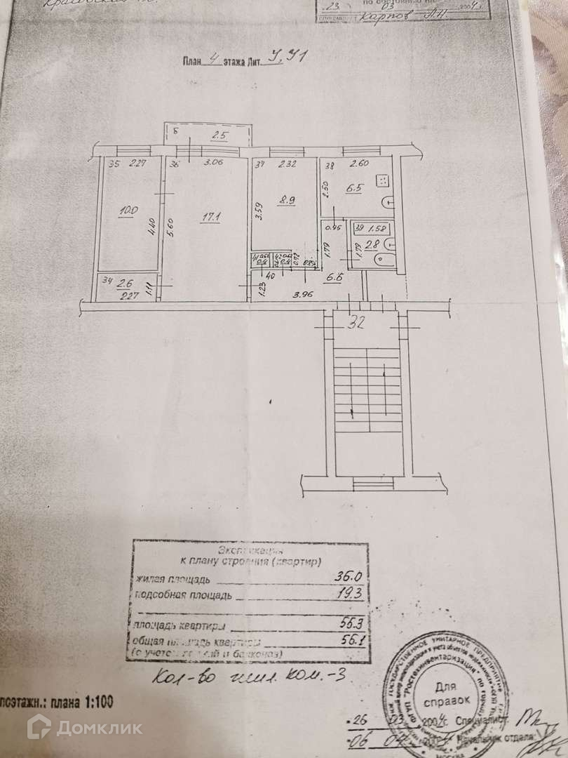 3-комнатная квартира, 56.1 м2, этаж 4 / 5, на продажу в Самаре, улица Гагарина, 28