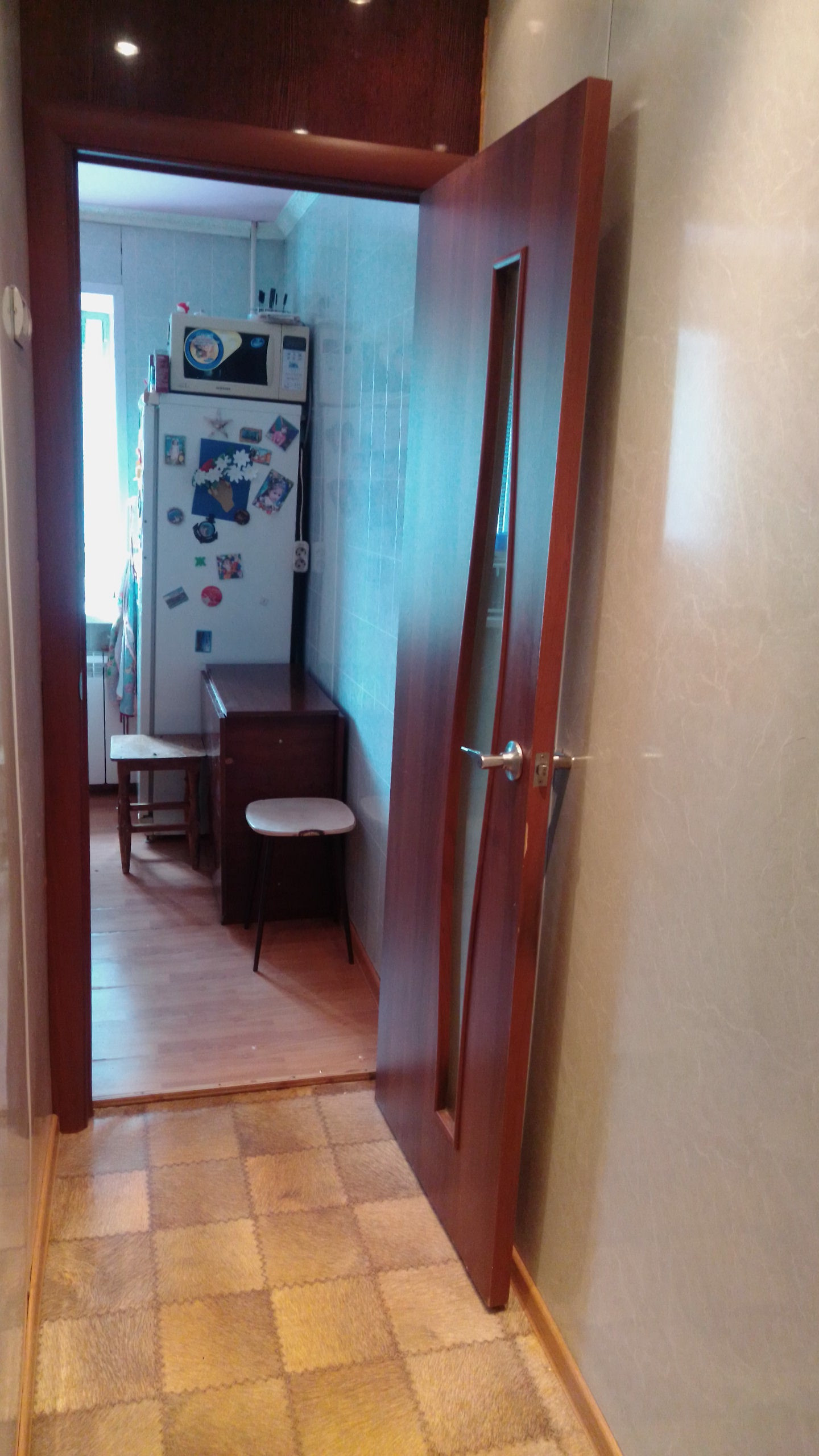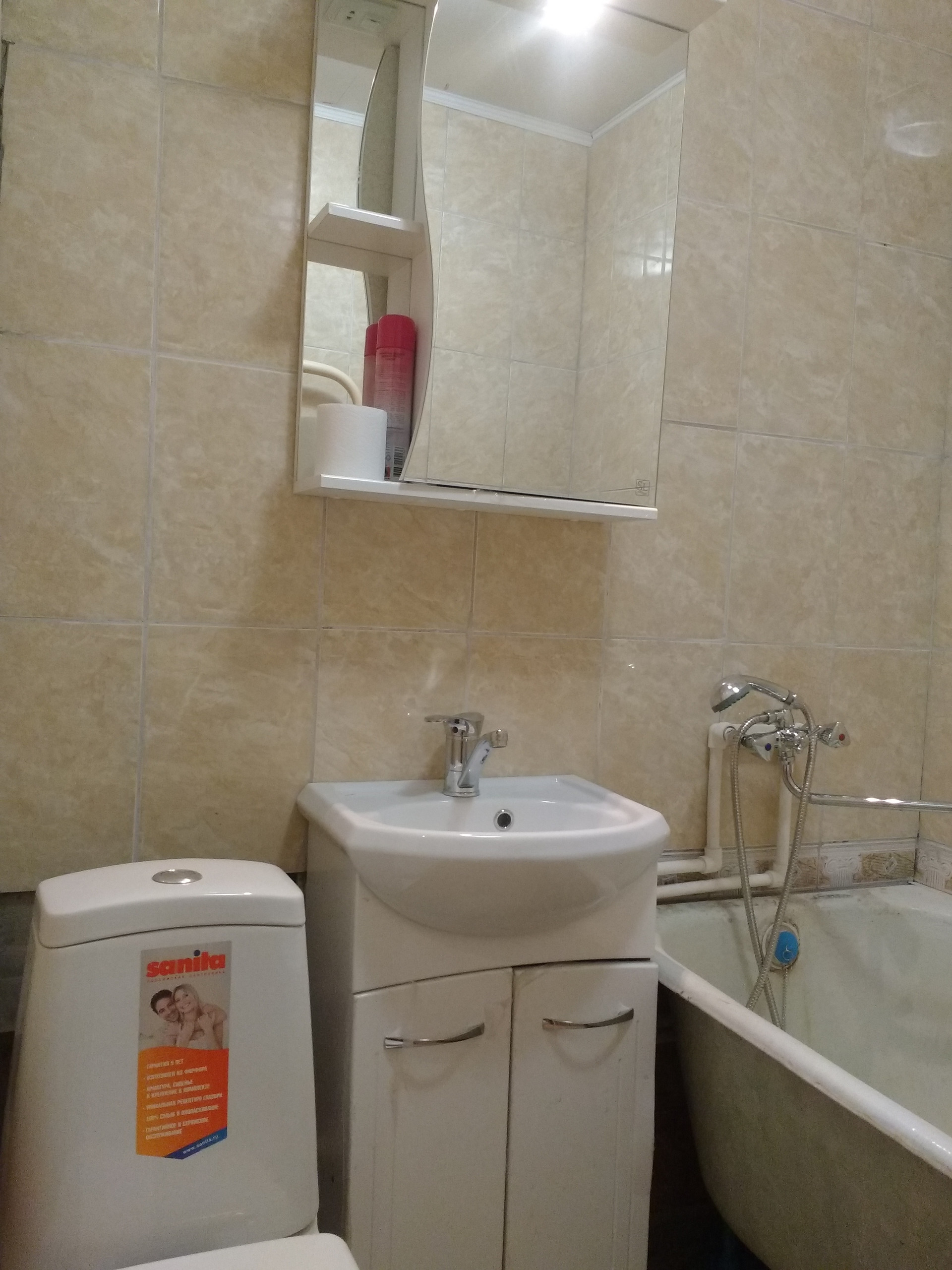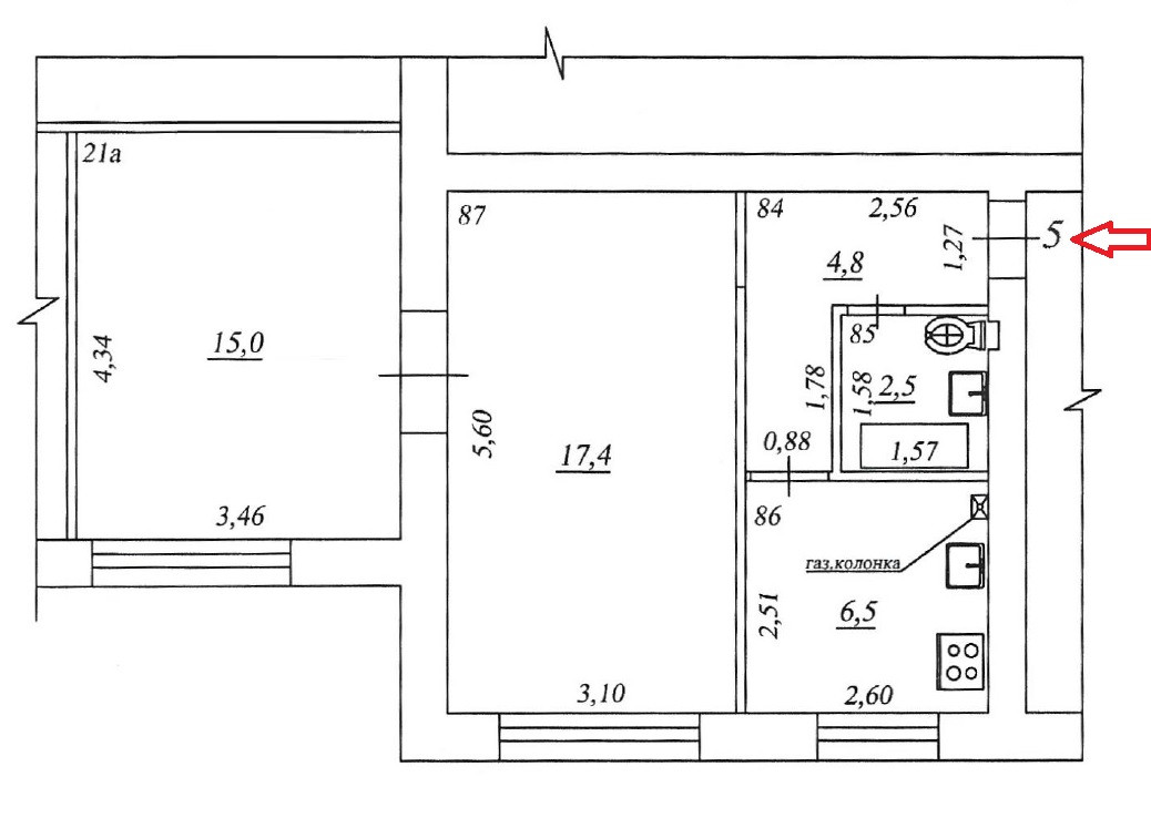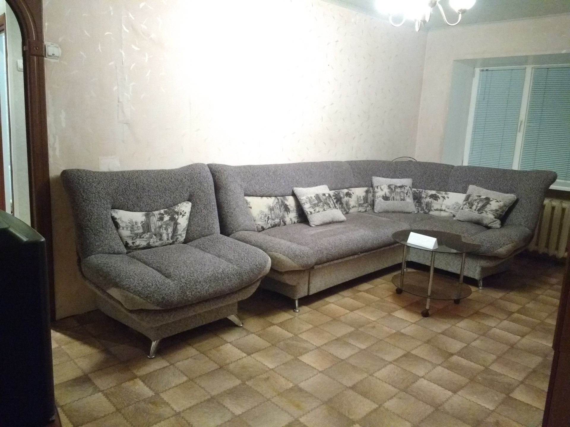 Ремонт косметический. На кухне остается удобный кухонный гарнитур, газовая колонка, газовая варочная панель, электрический духовой шкаф с грилем. Санузел совмещенный. Установлен счетчик электроэнергии. Вода и газ без счетчиков. Есть домофон.