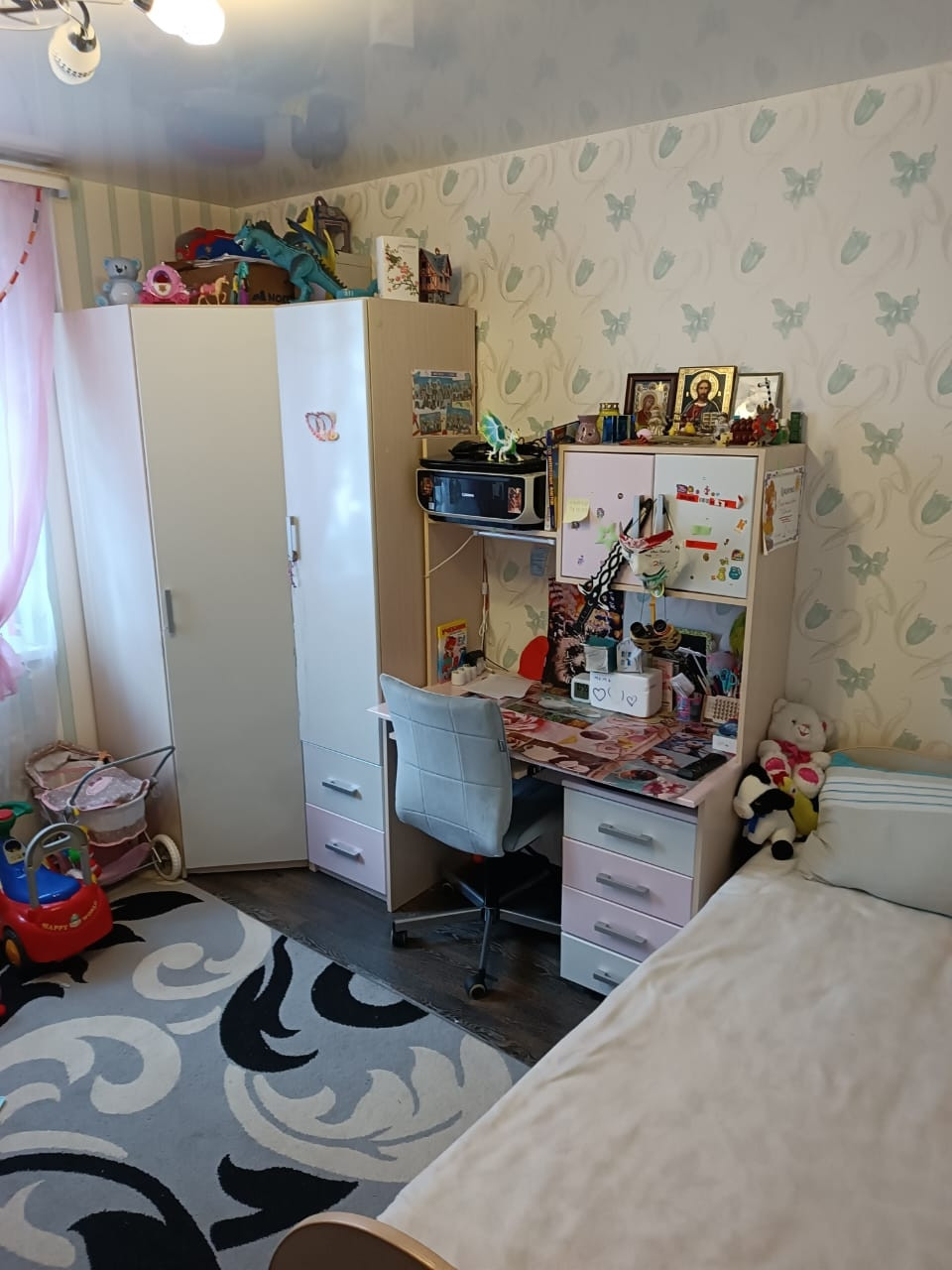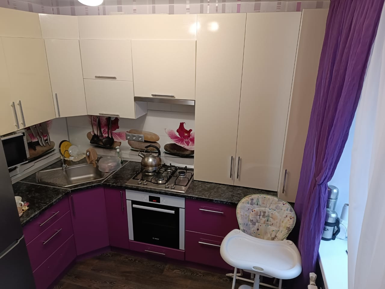 Квартира в хорошем состоянии-на полу в санузле, прихожей и детской комнате теплые полы, окна(выходят во двор).  Двор благоустроен- в шаговой доступности детский сад, школа, поликлиника, спортивная и детская площадка, магазины, сбербанк, торговый центр Мега . Материнский капитал не использовался, ипотека погашена. Торг уместен.
