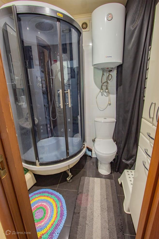 В ванной комнате установлена душевая кабина, что позволяет принимать душ с комфортом и экономить пространство. Водонагреватель обеспечивает постоянное горячее водоснабжение, что является важным для комфортного проживания.
