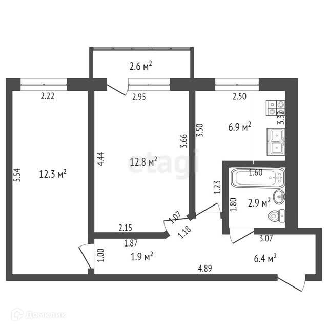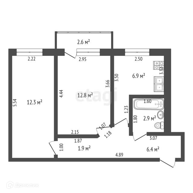Общая площадь 44 м2