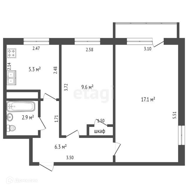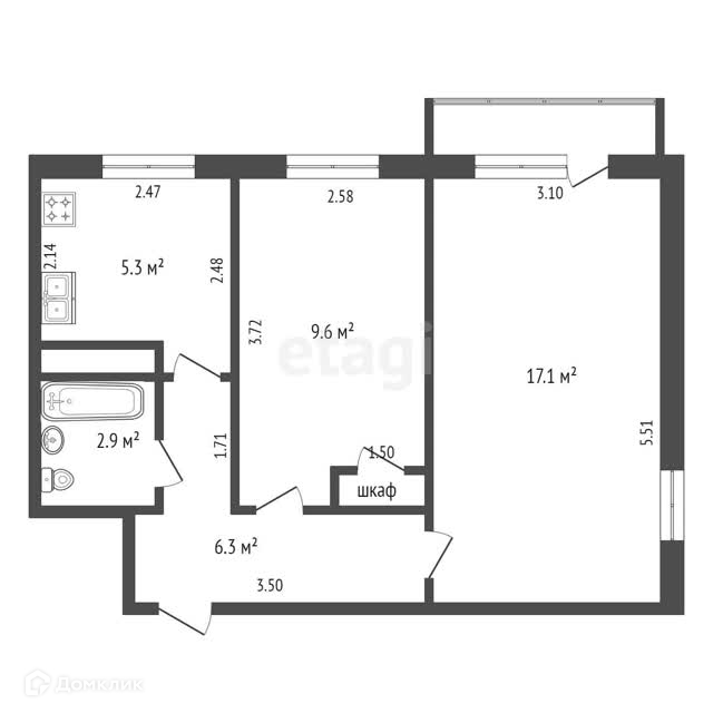 Общая площадь 43 м2