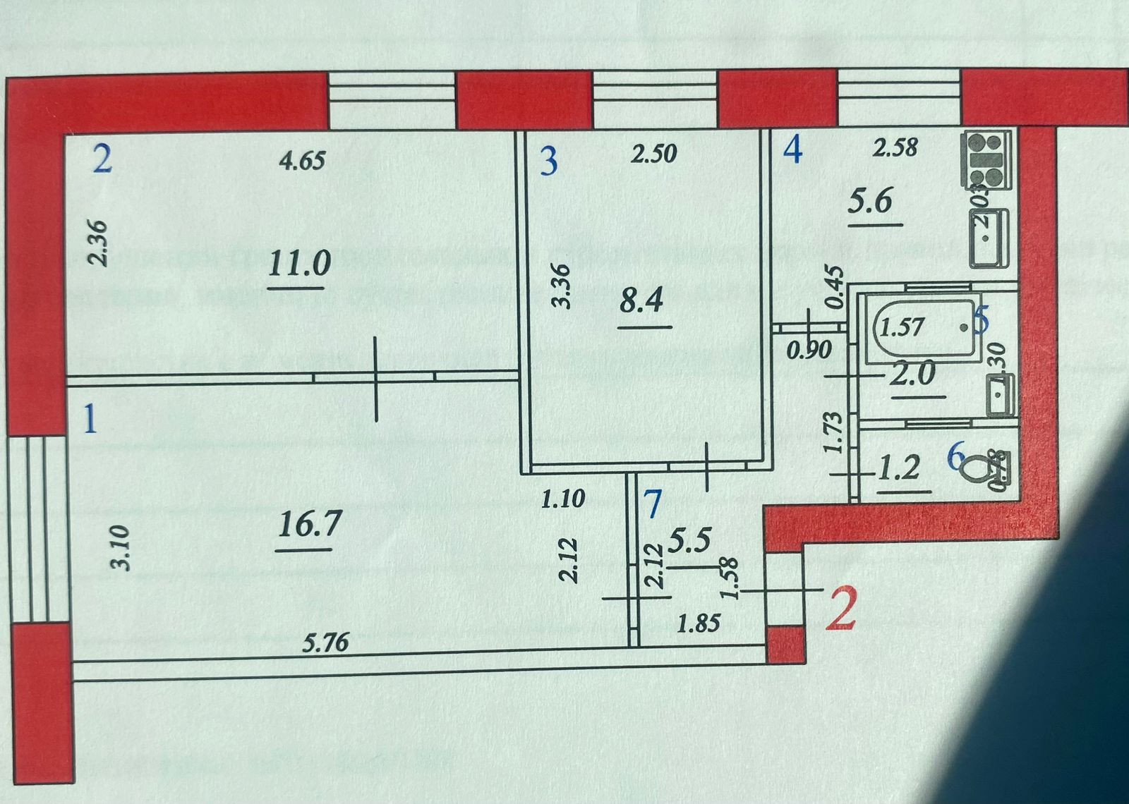 Площадь кухни 5.6 м2