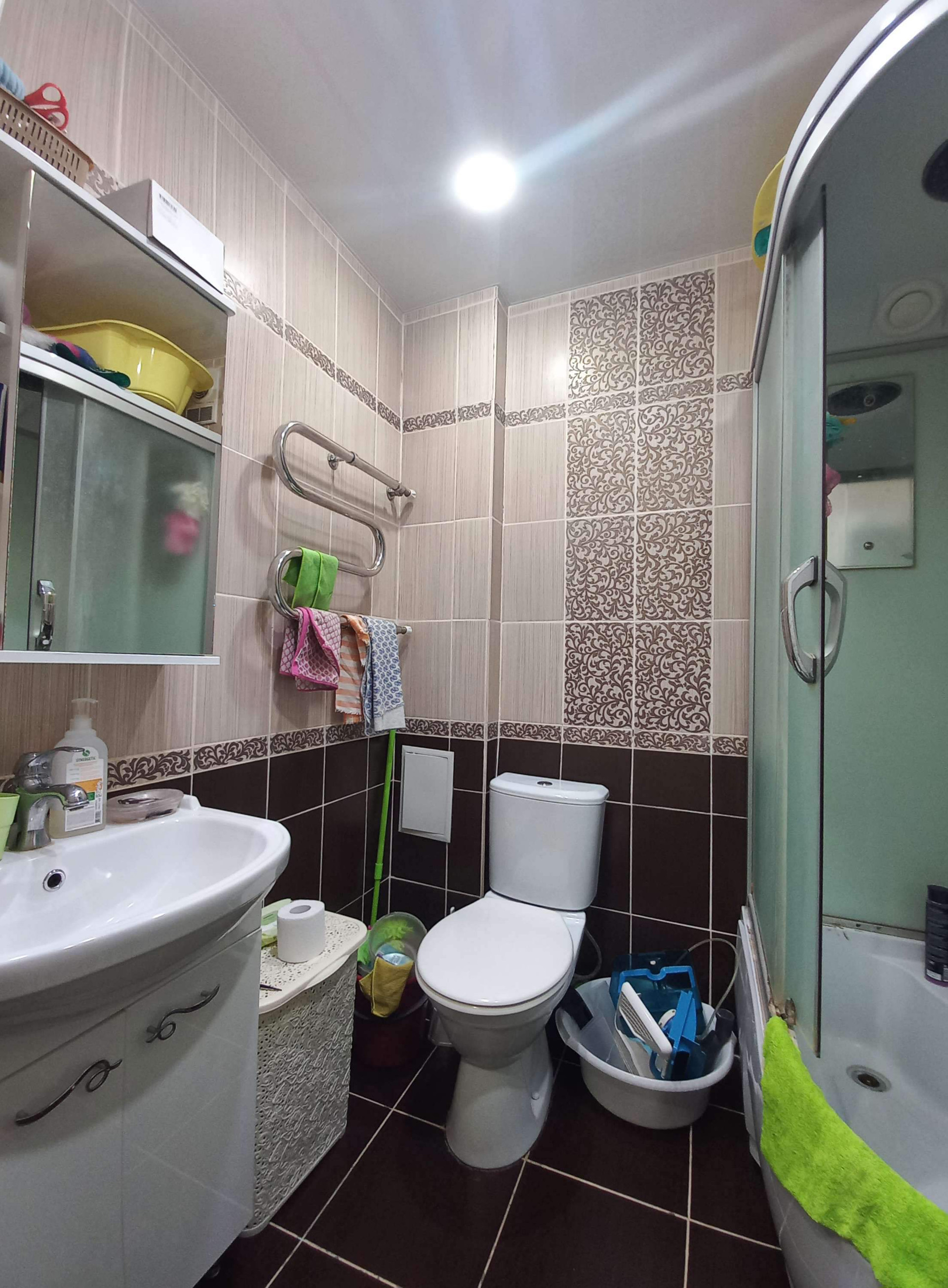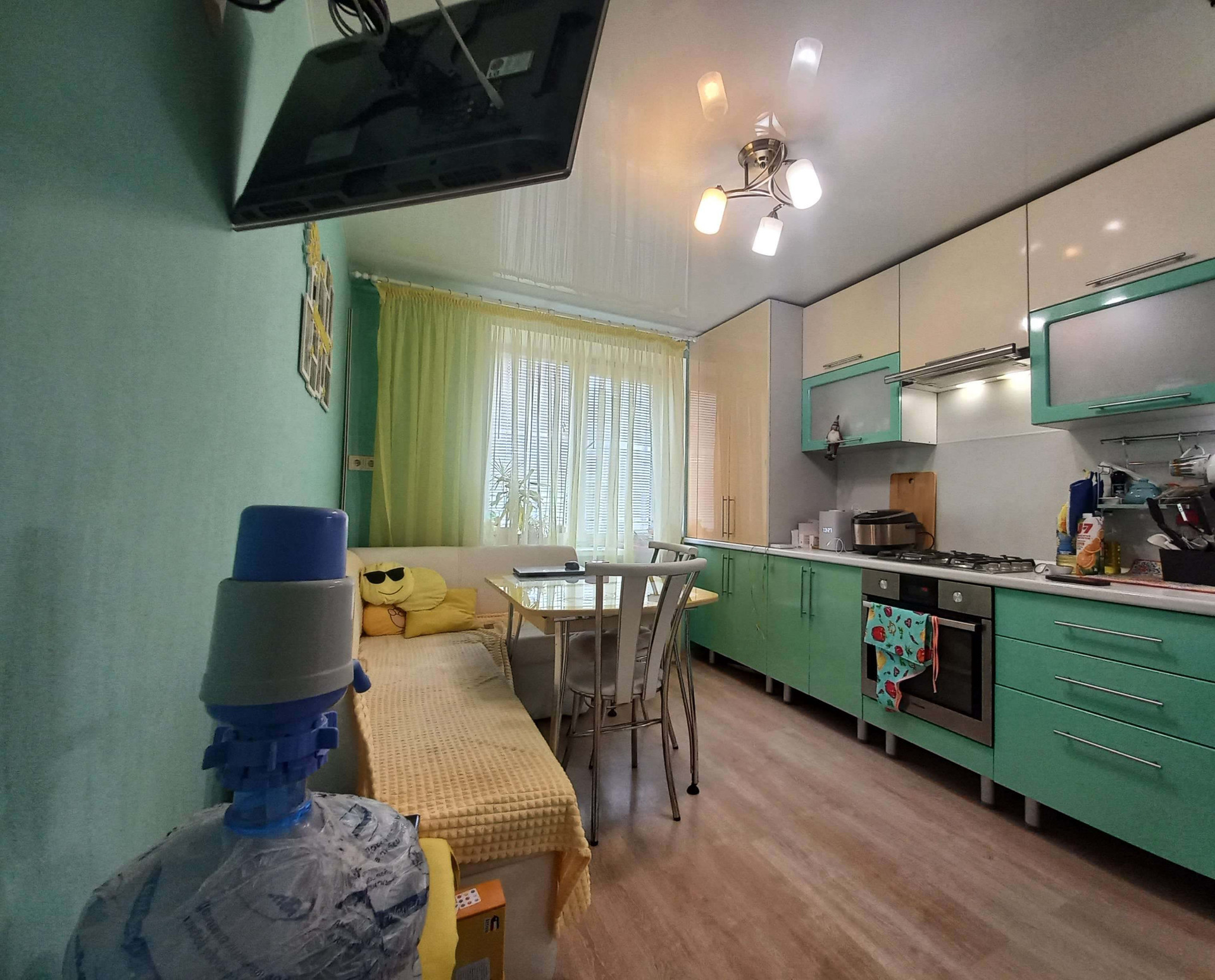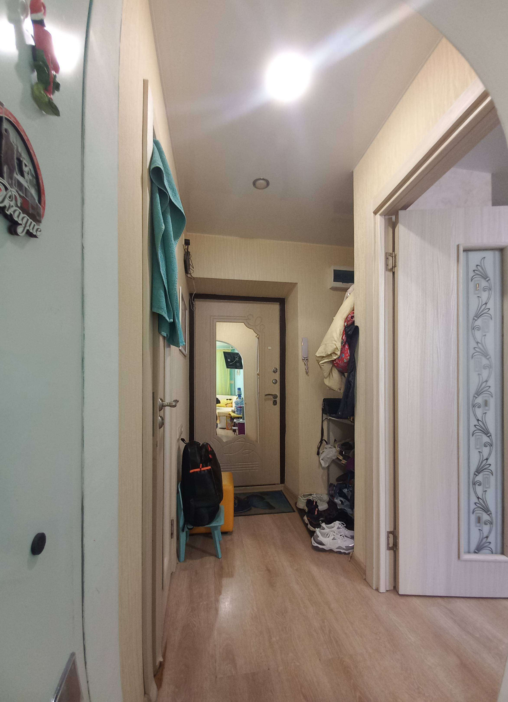 В квартире установлены: кухонный гарнитур с варочной панелью и вытяжкой, шкаф-купе, кондиционер, душевая кабина, раковина с тумбой, зеркало, полотенцесушитель, люстры, хорошая входная дверь. Покупай и живи, квартира очень тёплая, не угловая, соседи хорошие.