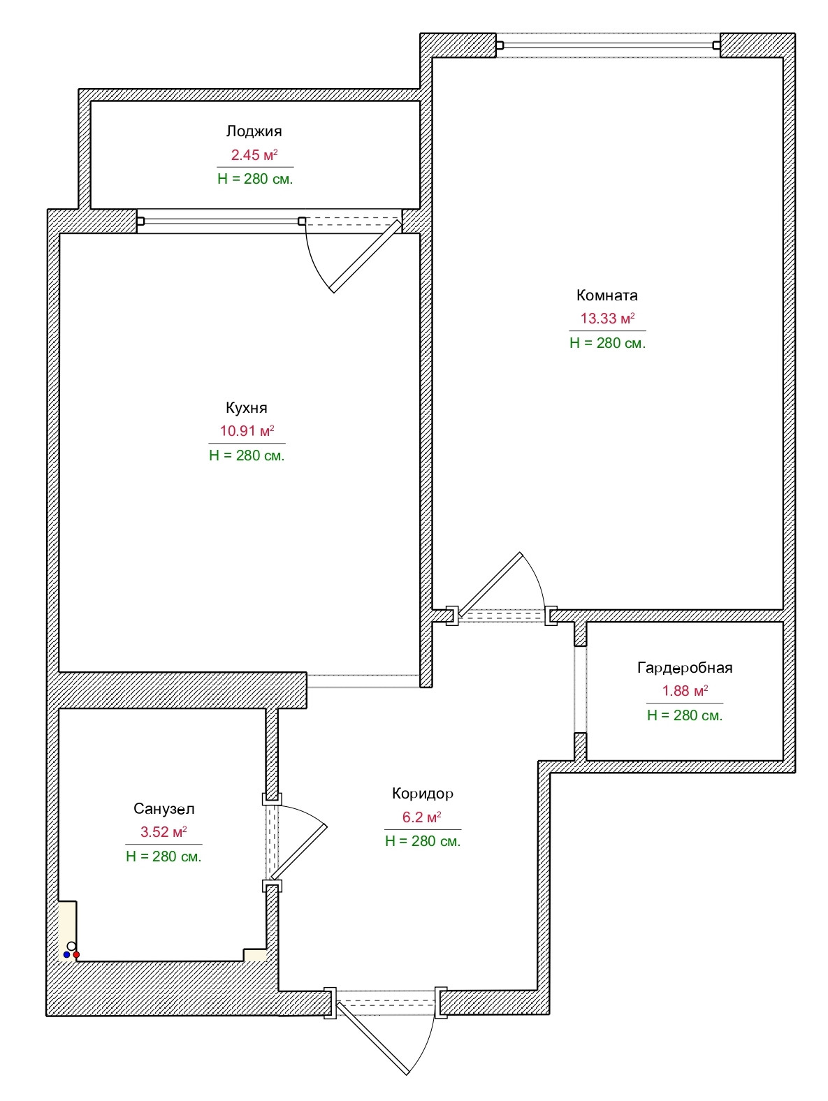 Общая площадь 38,3 кв.м.: