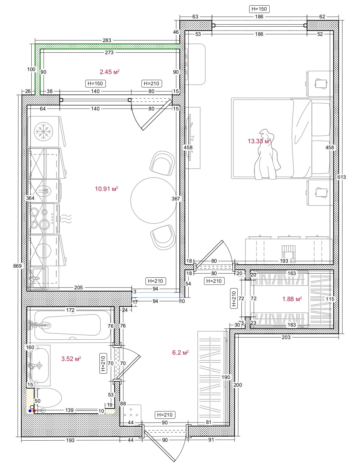 Гардеробная – 1,88 кв.м.