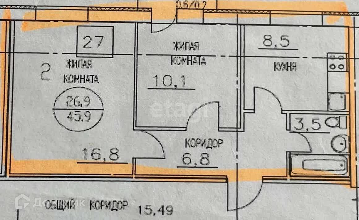 Общая площадь 45.9 м2