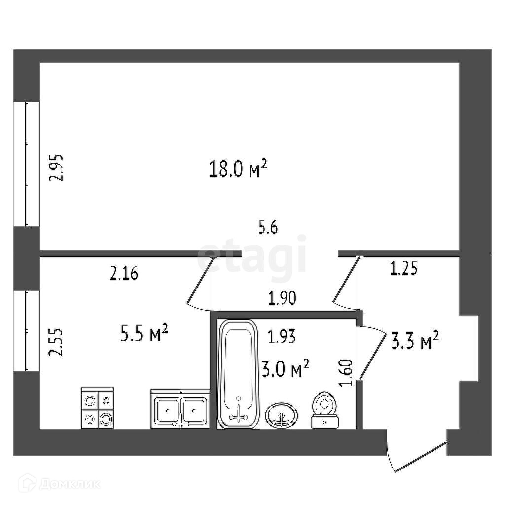 Общая площадь 33 м2