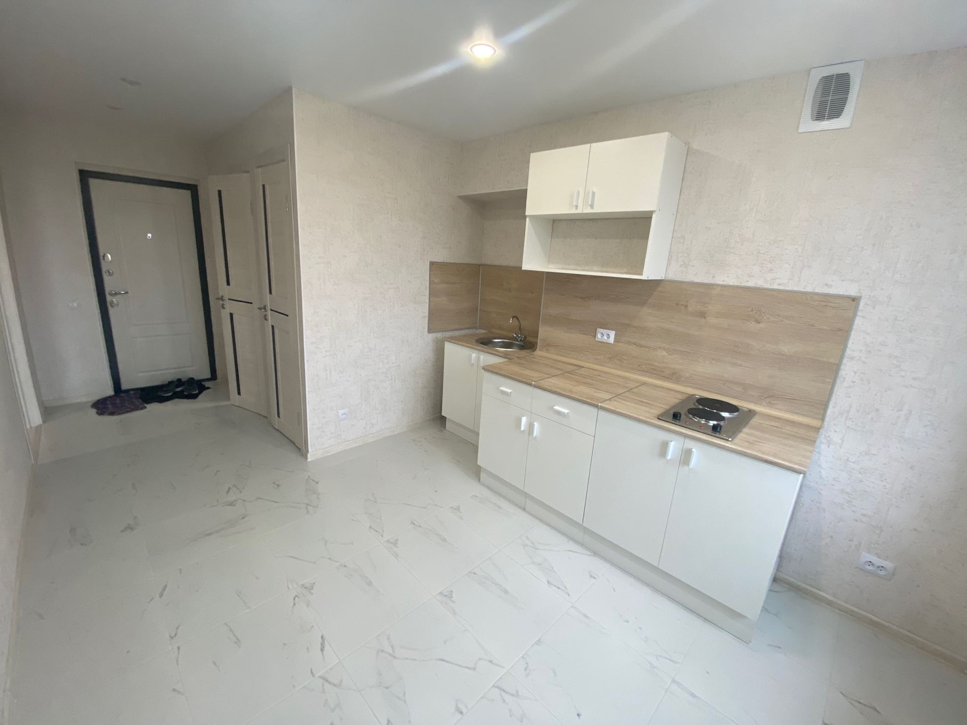 Полностью все поменяно-трубы,электрика,вся Сантехника,полы,окна,выровнены стены-в общем вообще все новое и после ремонта никто не жил!