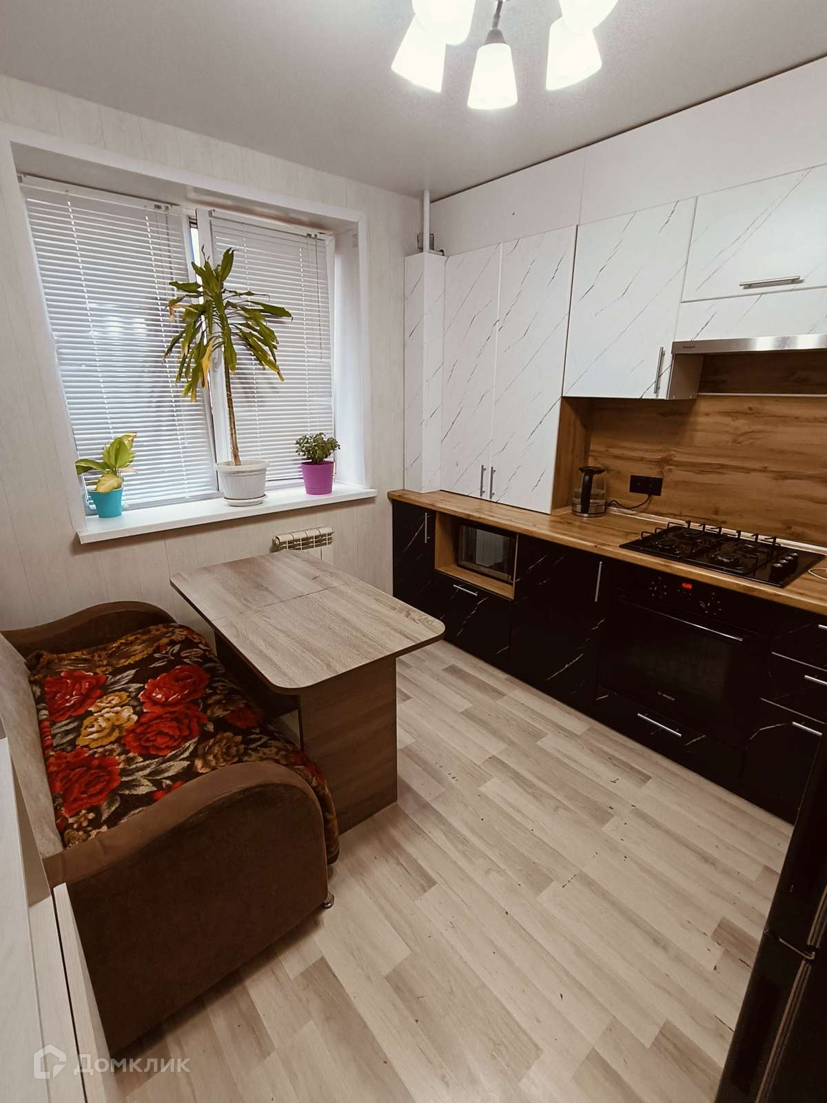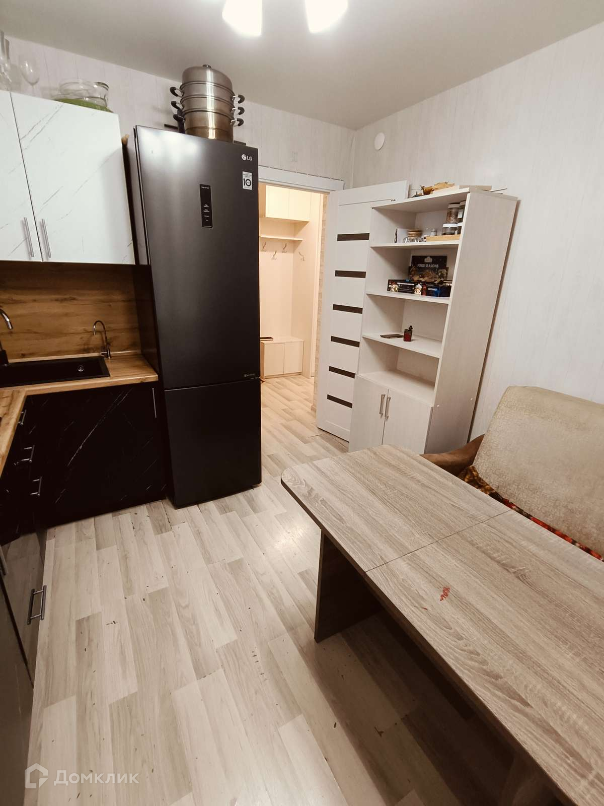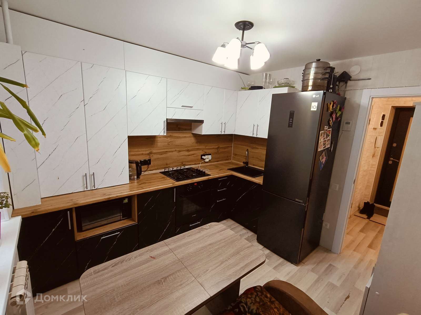 В квартире остается функциональный кухонный гарнитур, газовая варочная панель, духовой шкаф, в прихожей шкаф-купе.