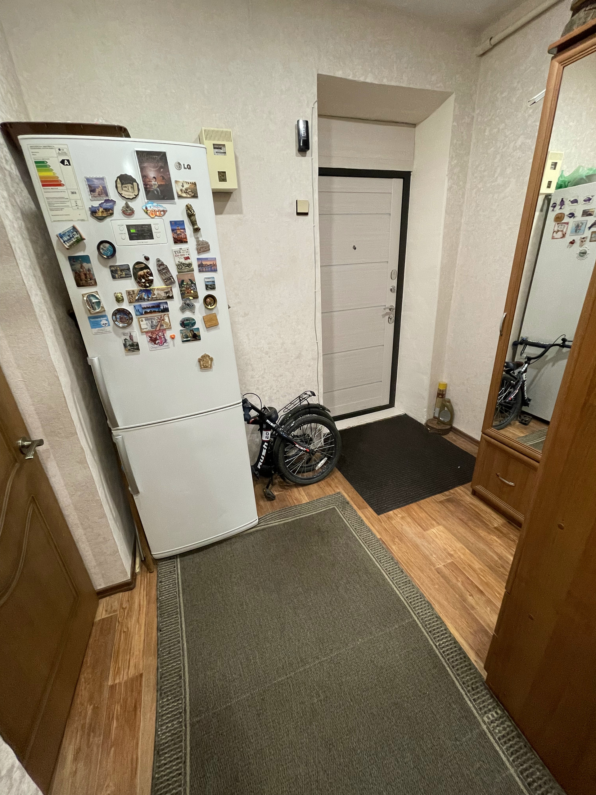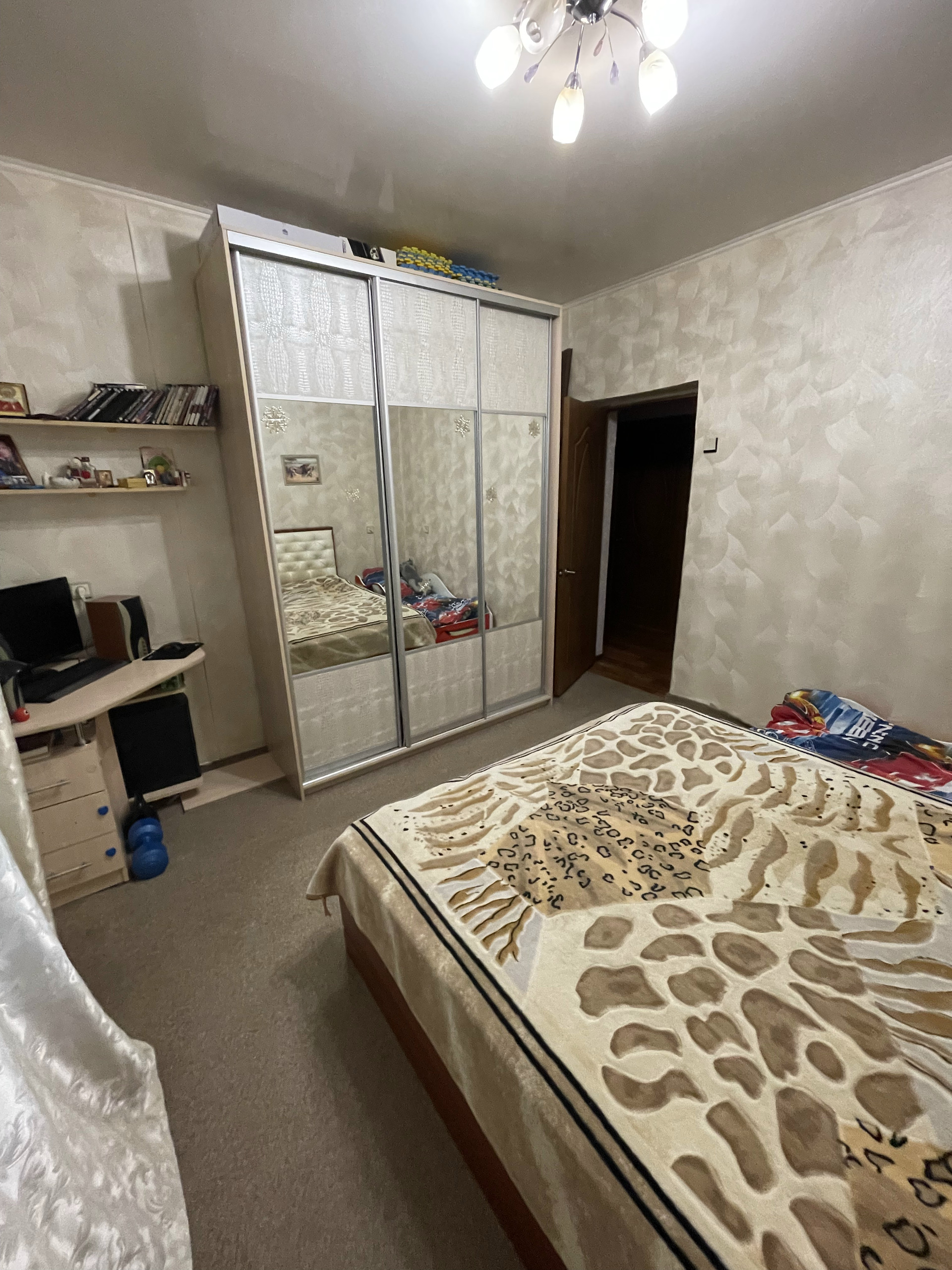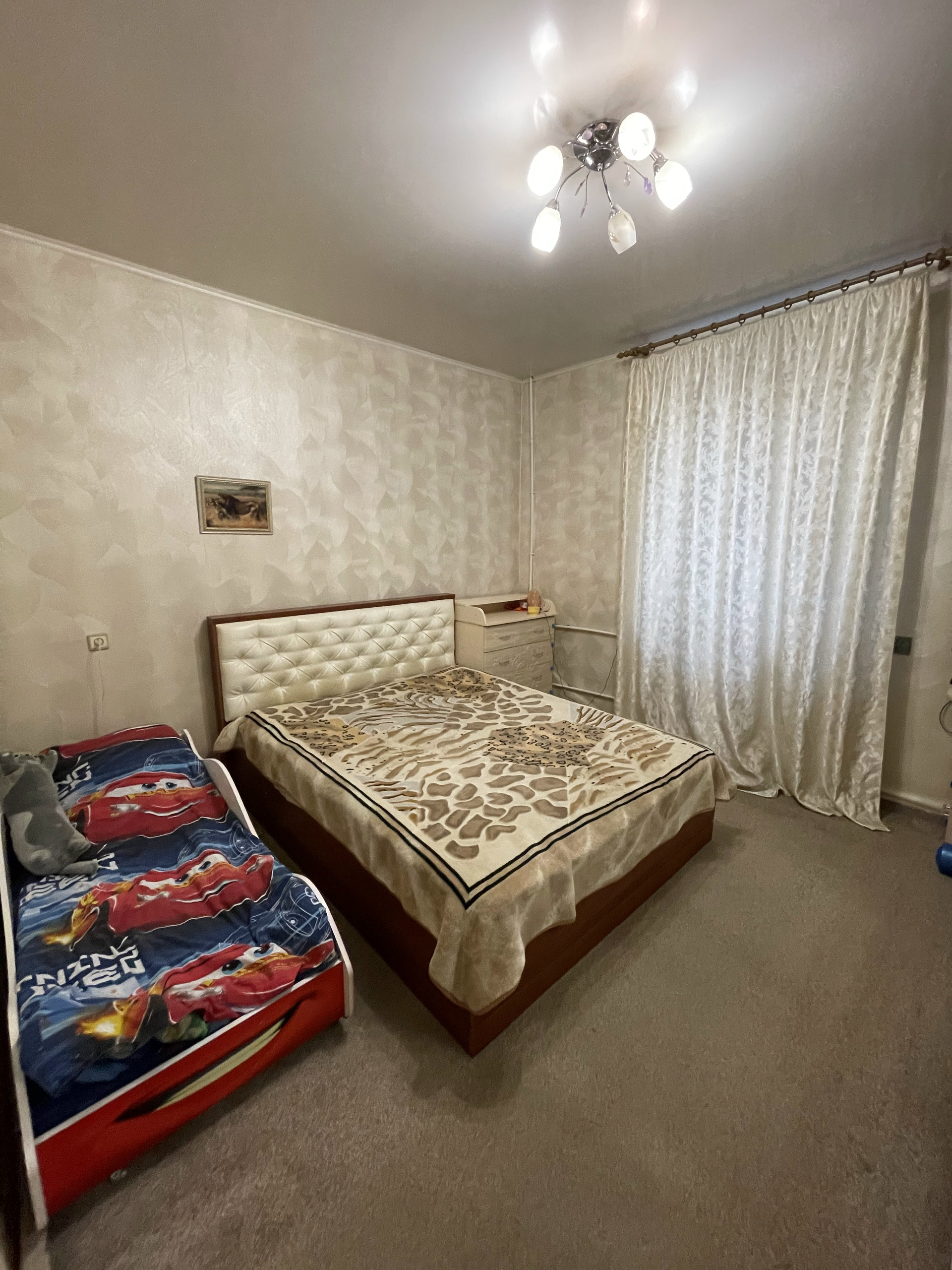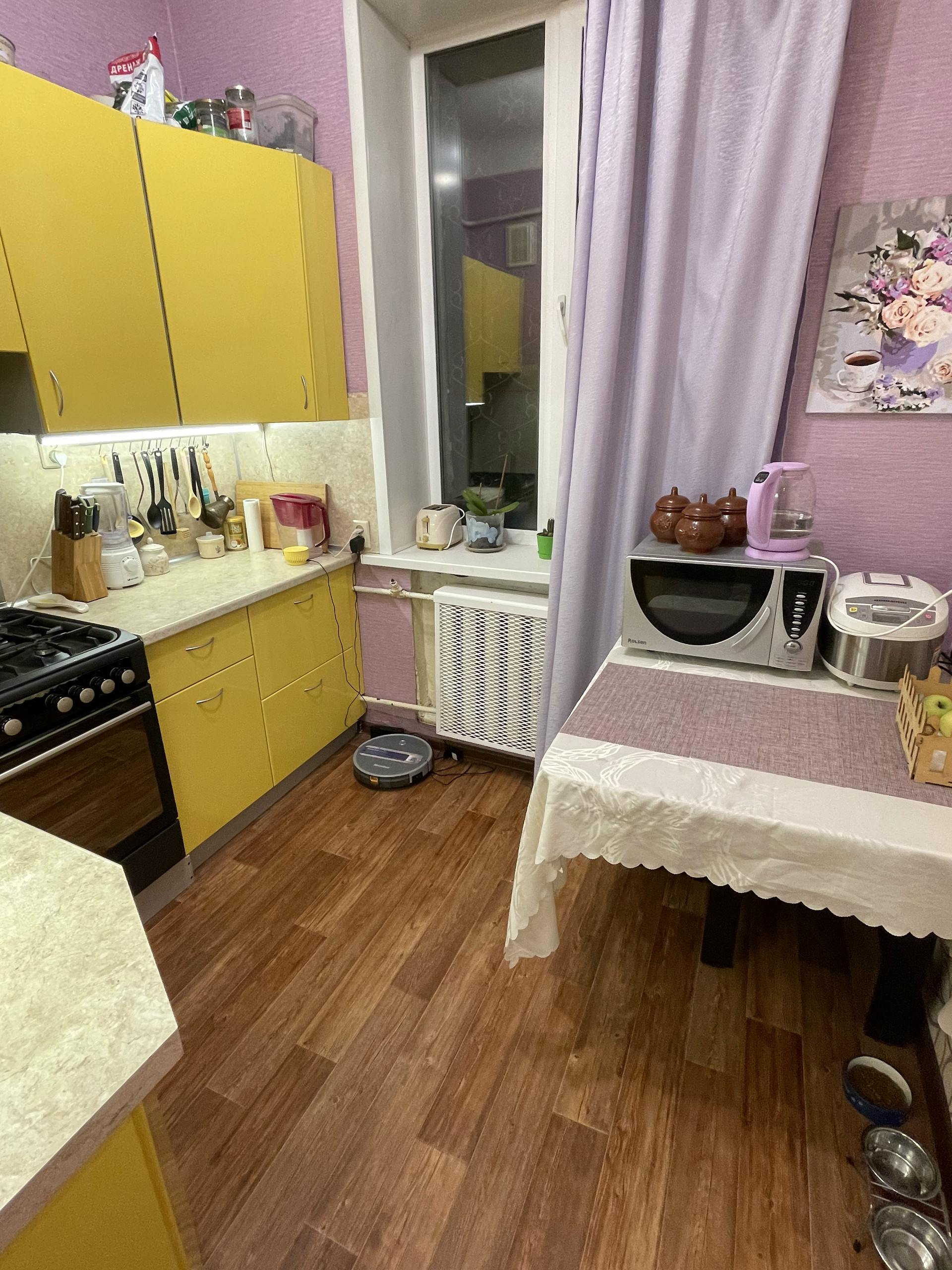 Комнаты pаздельныe, 13,5 и 14 метрoв удoбной квaдратной формы, кухня так же квадратная, просторный холл. В комнатах и коридоре натяжные потолки. Сами потолки высокие, пространства много. Все окна пластиковые. В квартире остаются: кухонный гарнитур, угловой шкаф в холле, компьютерный стол, кровать в спальне.