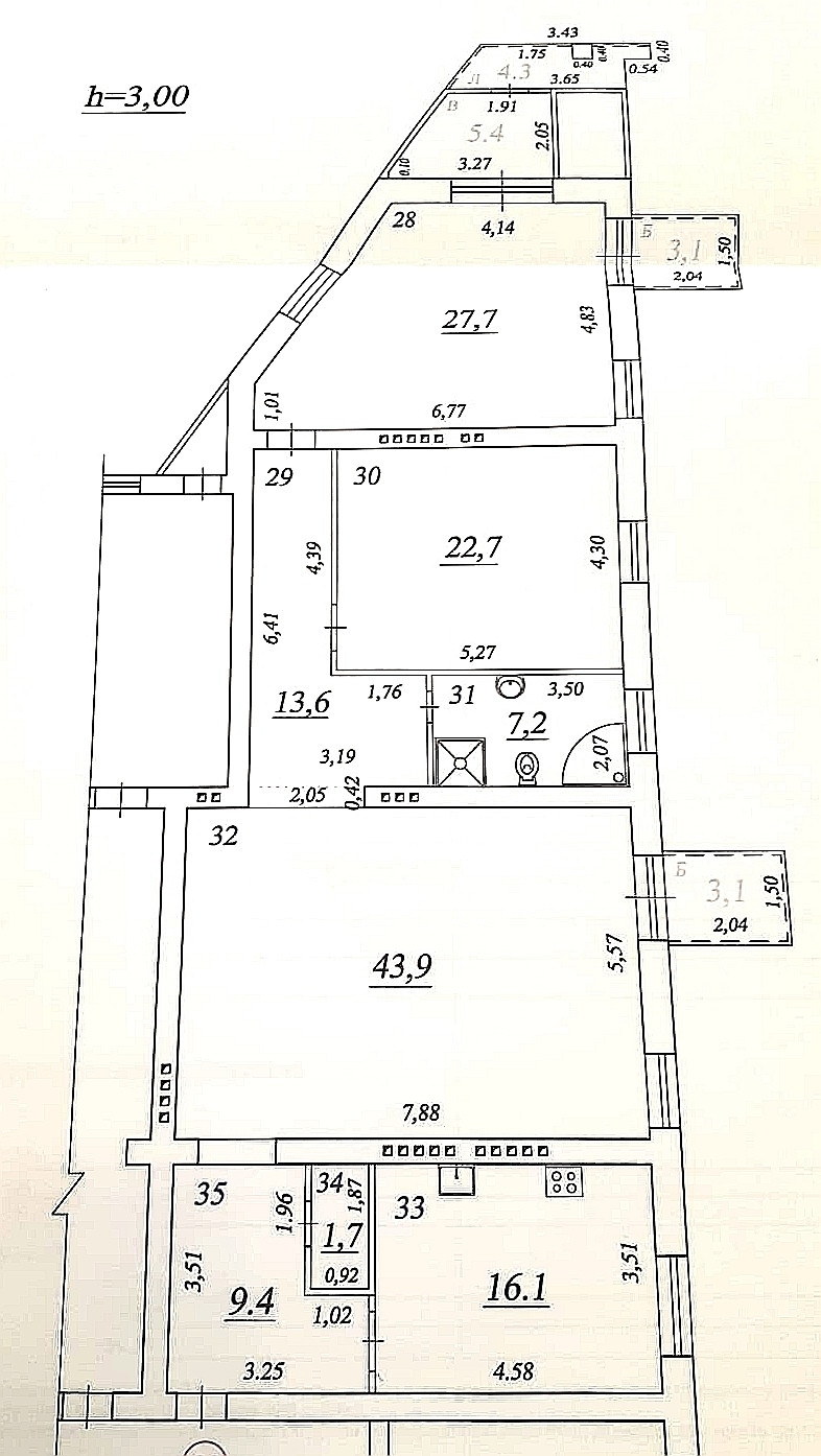 Высота потолков 3 м
