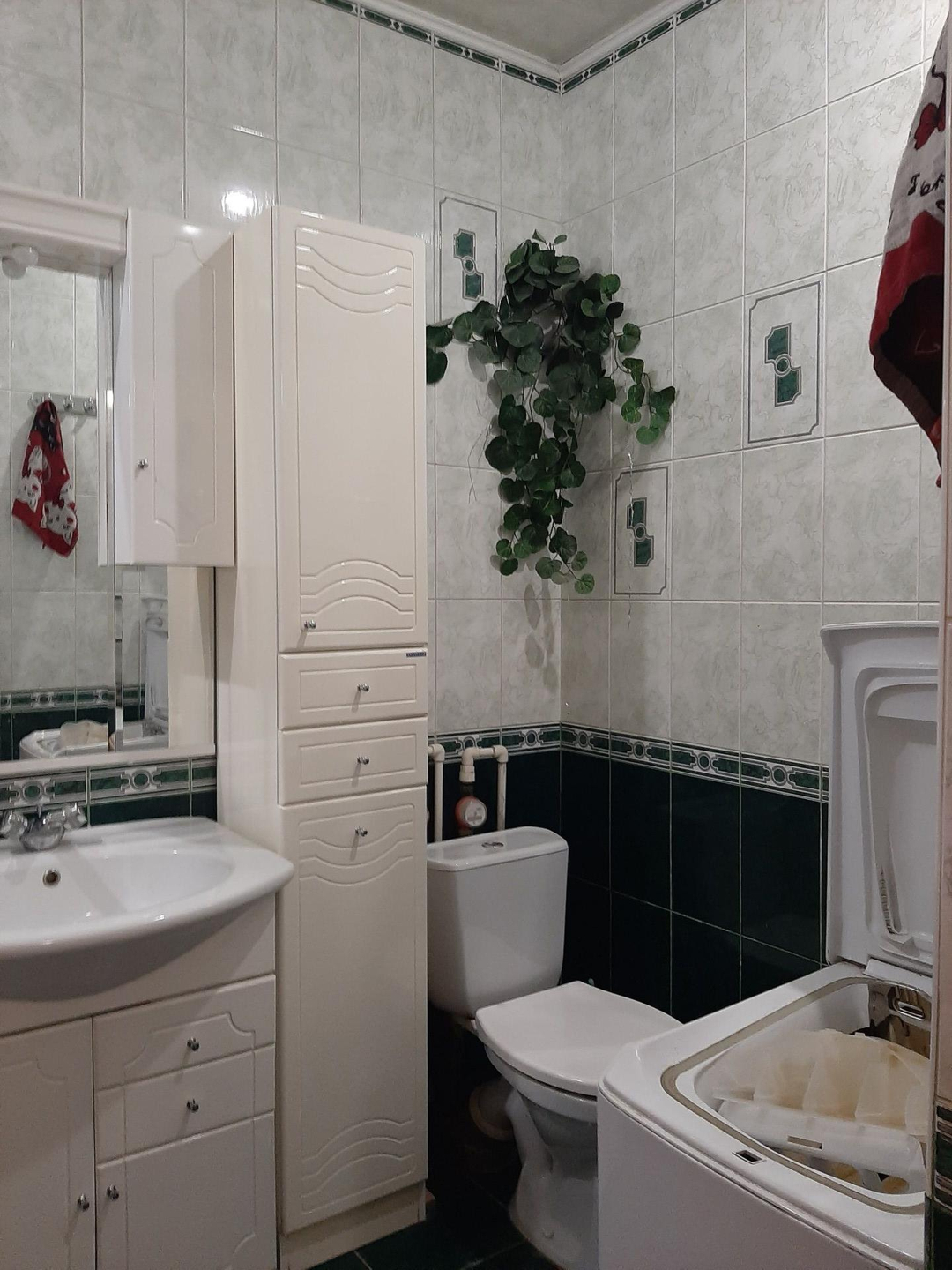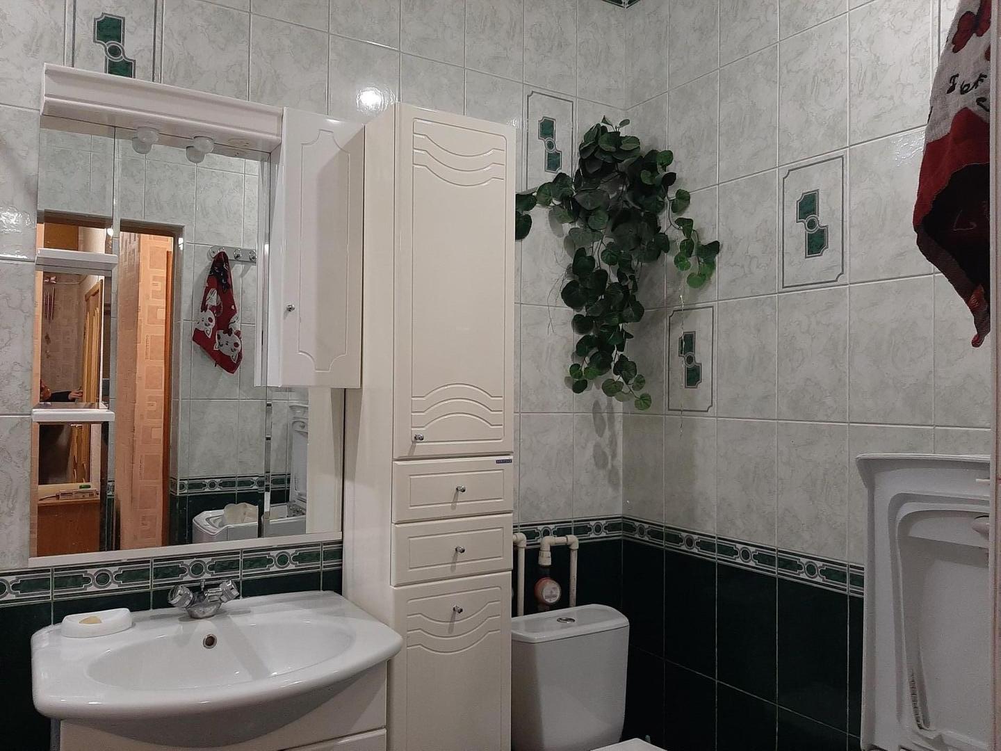 Санузел совмещенный, отделан полностью кафельной плиткой. Установлены счетчики на воду.