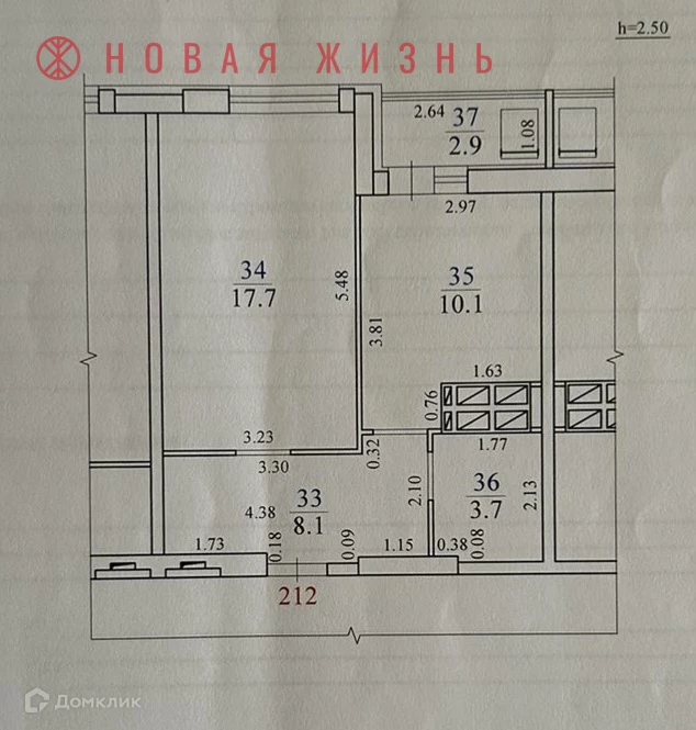 Общая площадь 39.6 м2