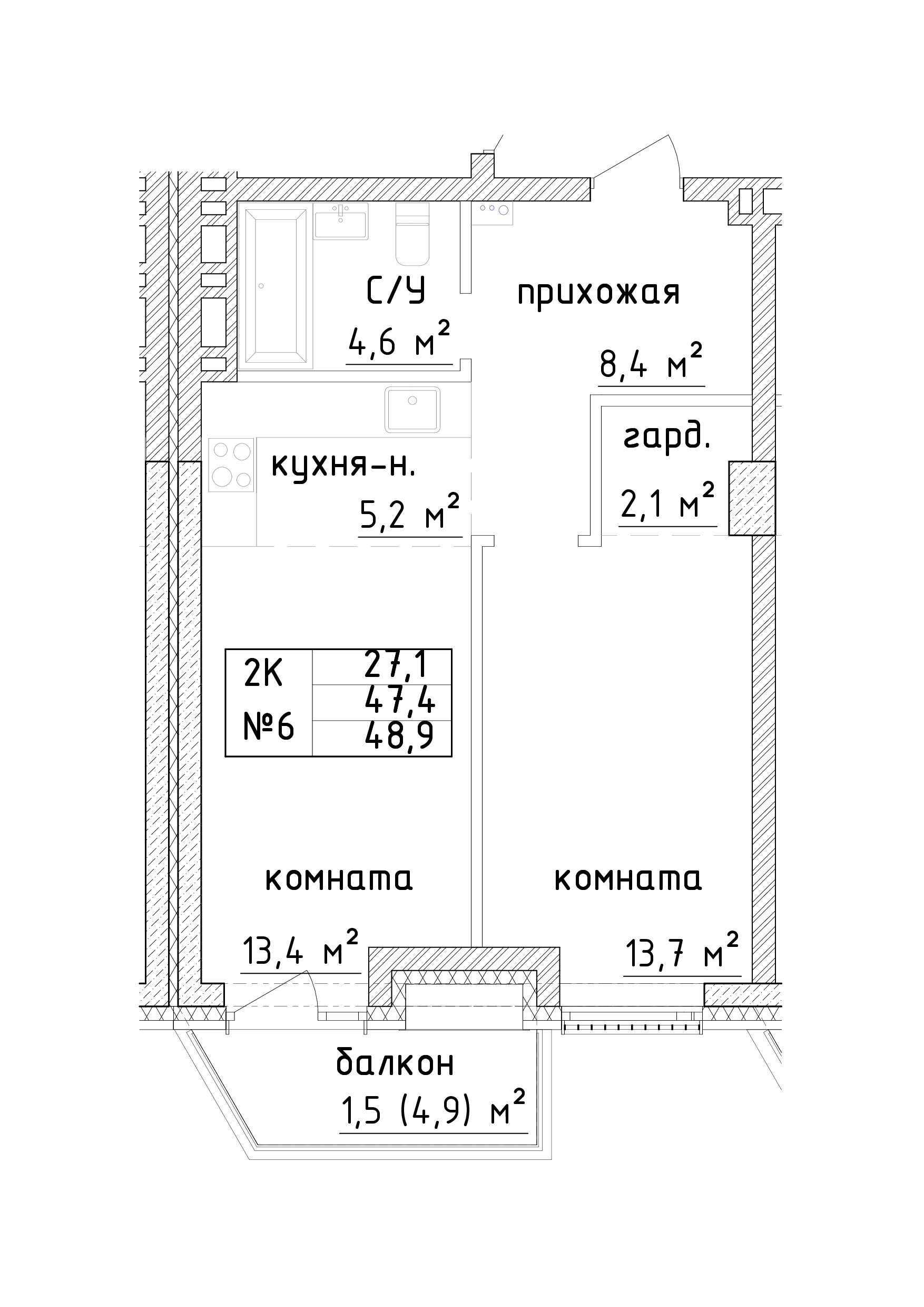Общая площадь 48.9 м2