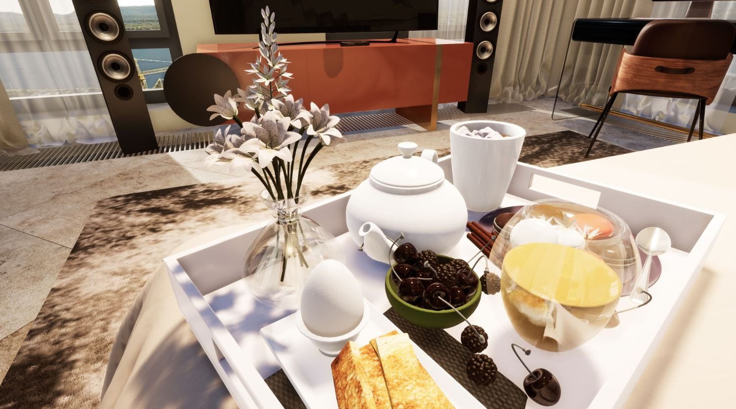 - Уникальное оснащение для жилого комплекса, включающая в себя: 7 ресторанных площадок, Небесный парк с бассейном на крыше жилого дома, станции зарядки электромобилей, наномойка в подземном паркинге на 860 парковочных мест, интерактивная детская площадка, фитнес комплекс с аква-зоной и 25 метровым бассейном, фитокафе на террасе.