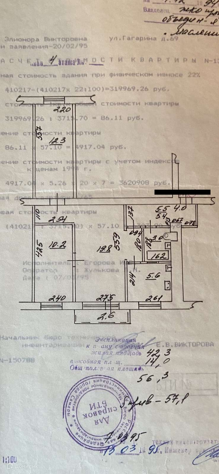 3-комнатная квартира, 56.3 м2, этаж 4 / 5, на продажу в Самаре, улица Гагарина, 69