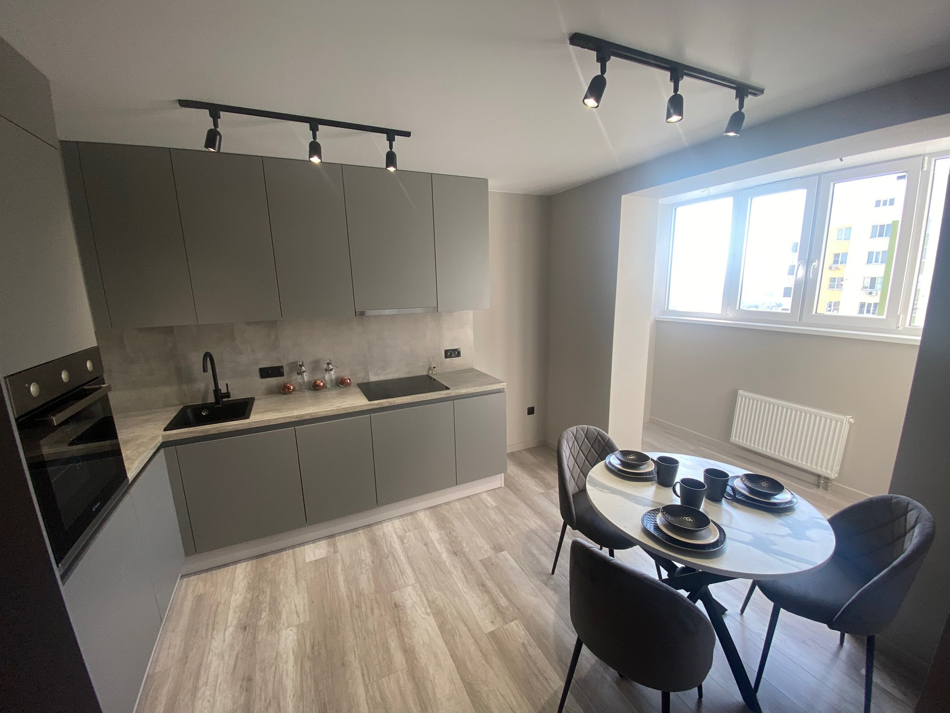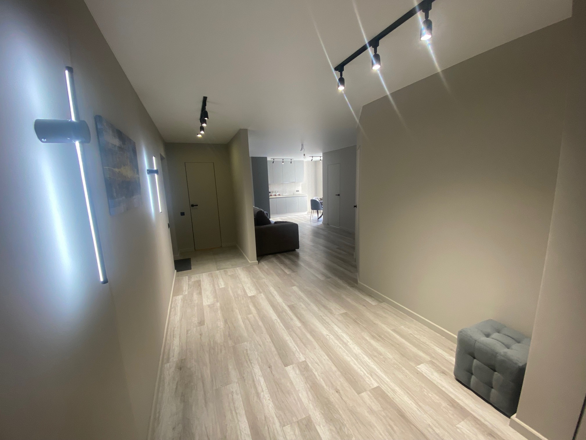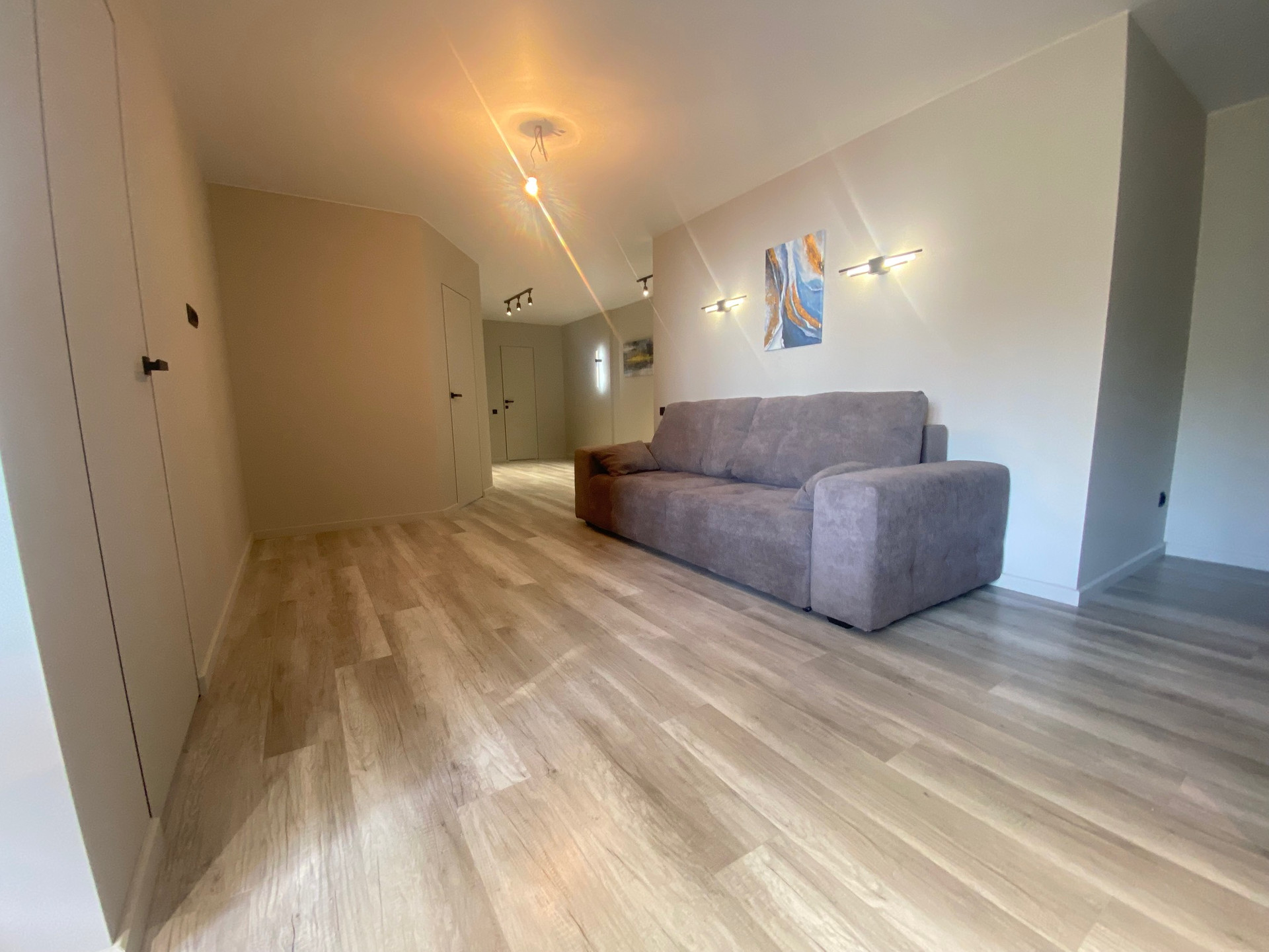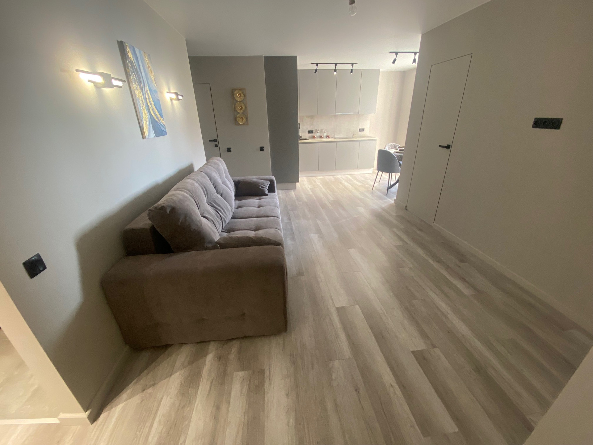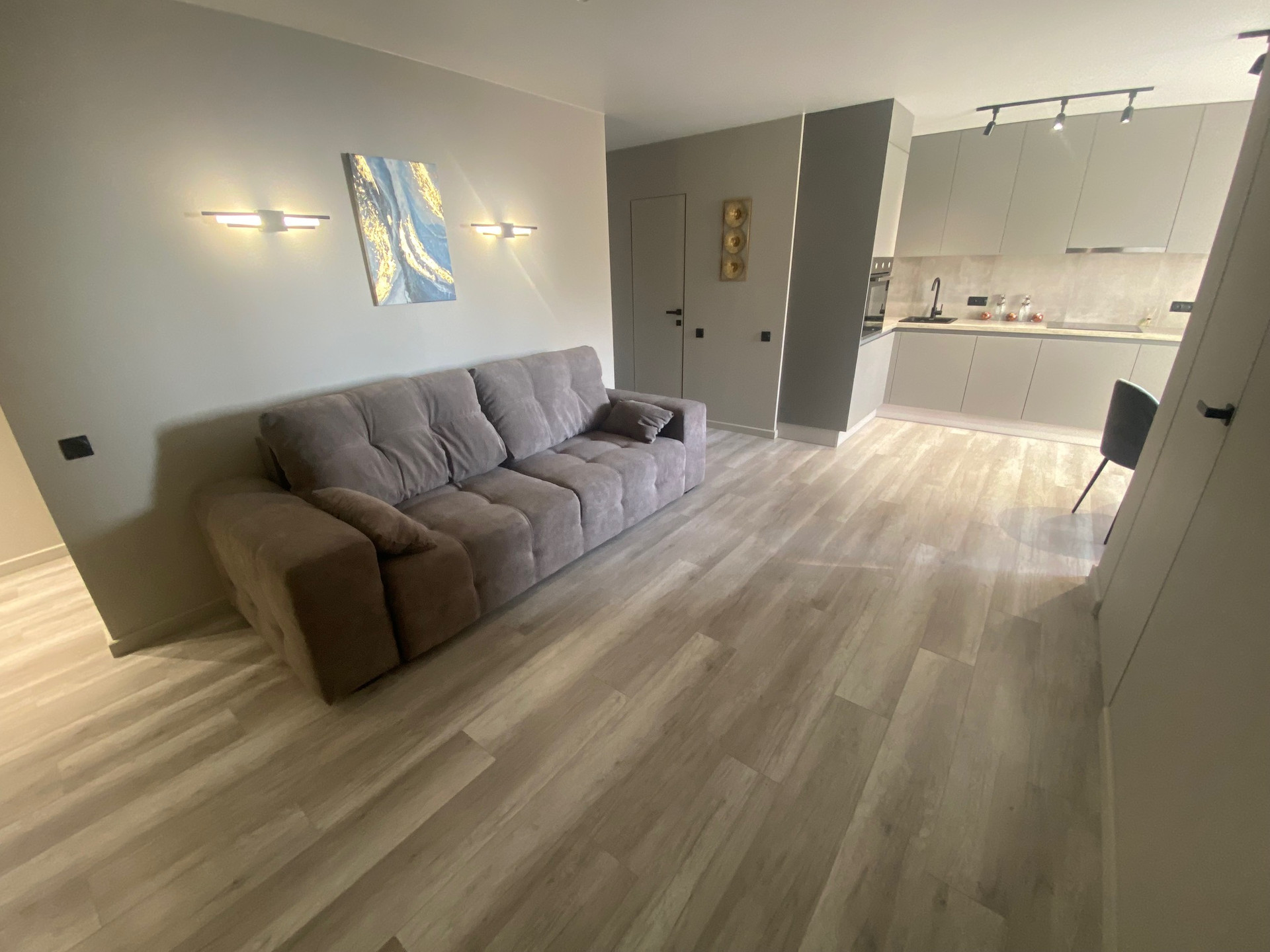 Стильный современный ремонт, выполнен из качественных материалов, все продумано для комфортного проживания, полы-ламинат, керамогранит, в санузле новая сантехника. Потолки натяжные. Кухня Мария со встроенной техникой (варочная панель, духовка, вытяжка, посудомоечная машина).