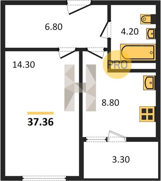 Общая площадь 37.36 м2