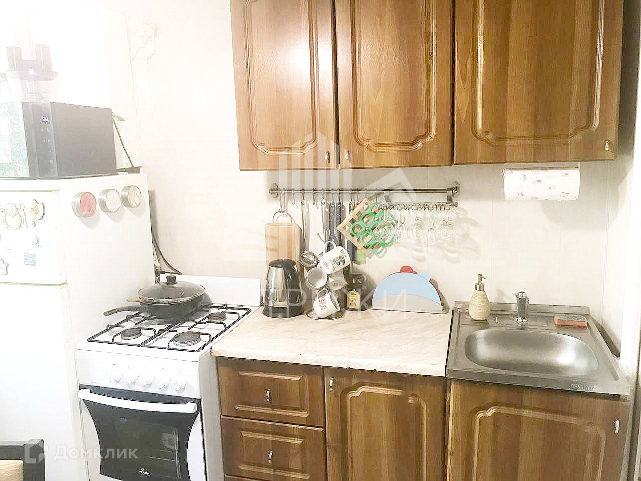 В квартире остаётся весь кухонный гарнитур со шкафами, холодильником, газовой плитой, рукомойниками, микроволновкой, останется уютный диван в комнате