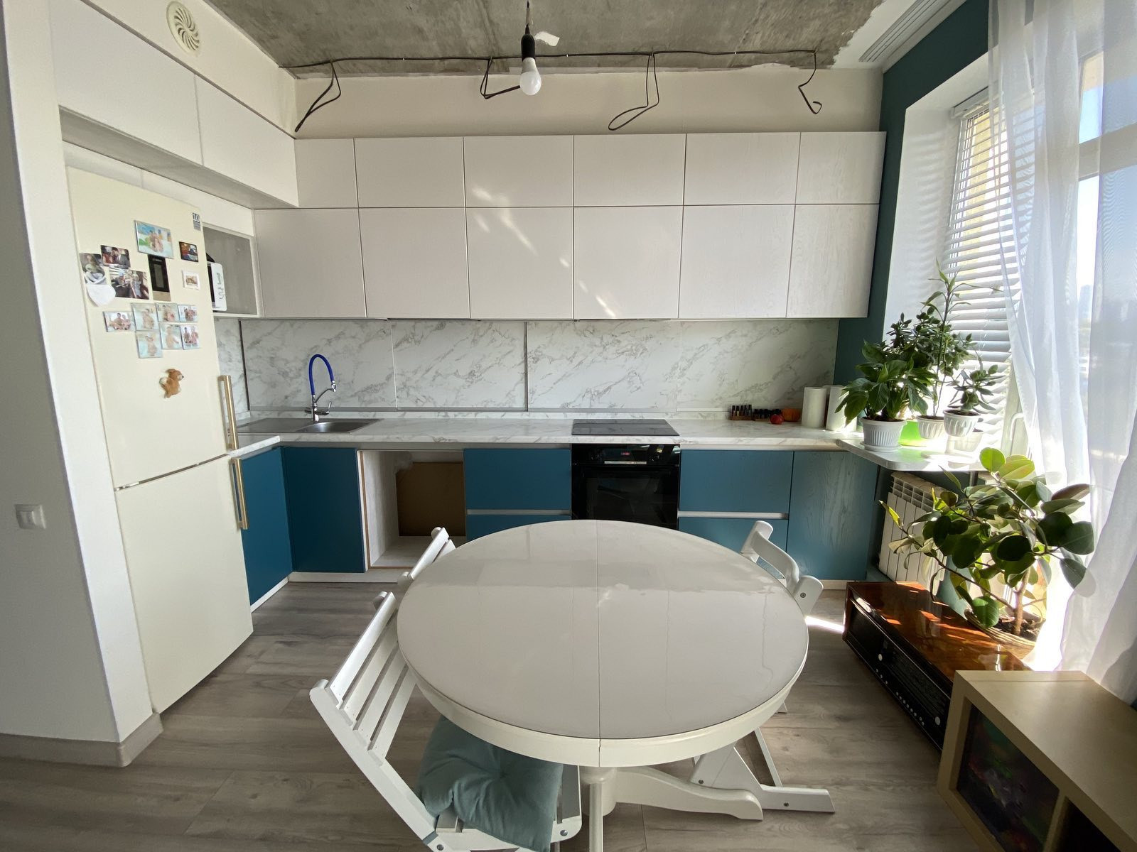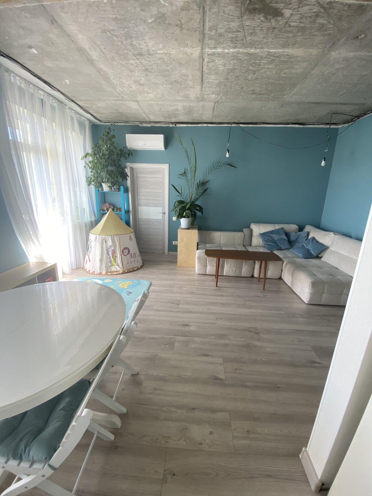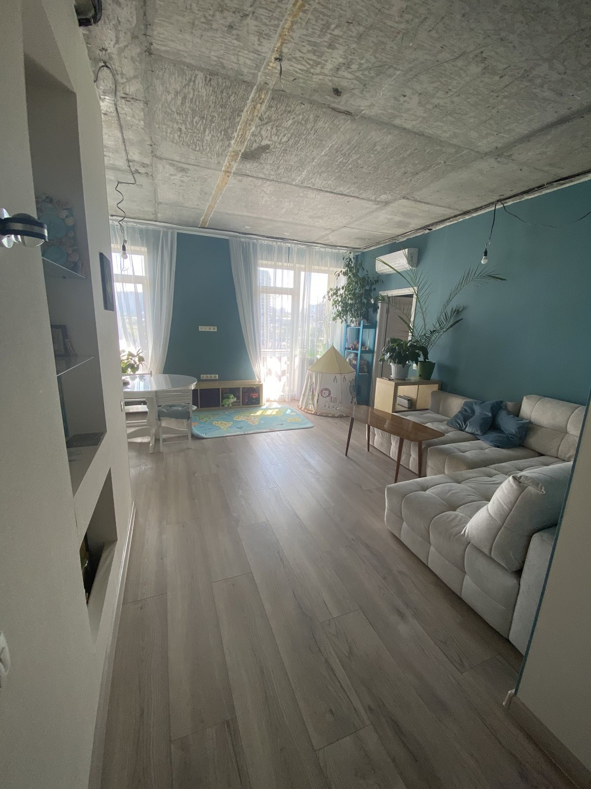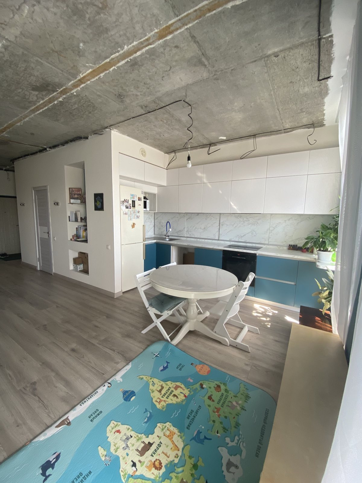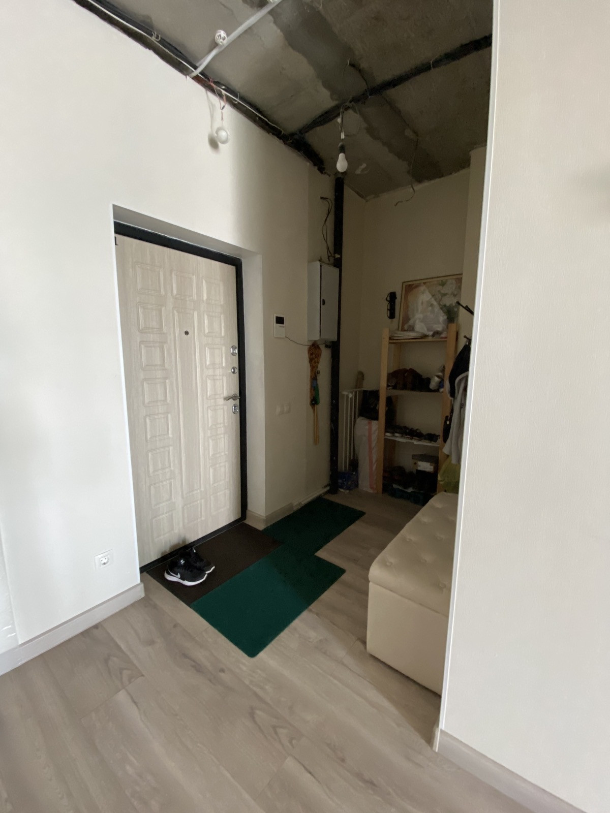 Везде на полу ламинат, натяжные потолки (кроме гостиной, хороший вариант внести последний штрих под себя с подобранными светильниками).