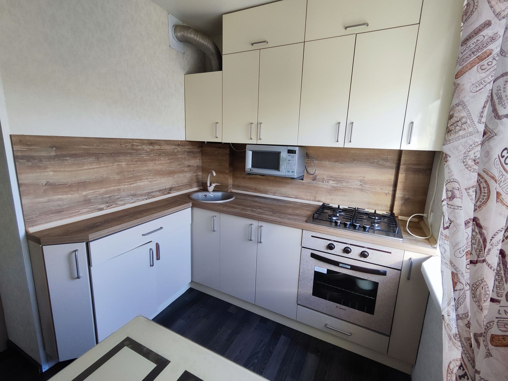 В квартире поменены стояки, радиаторы, окна ПВХ, проводка поменена полностью, ремонт делали для себя, продумано все до мелочей, дом в отличном состоянии, подъезд после ремонта, благоустроенный двор, доброжелательные соседи.