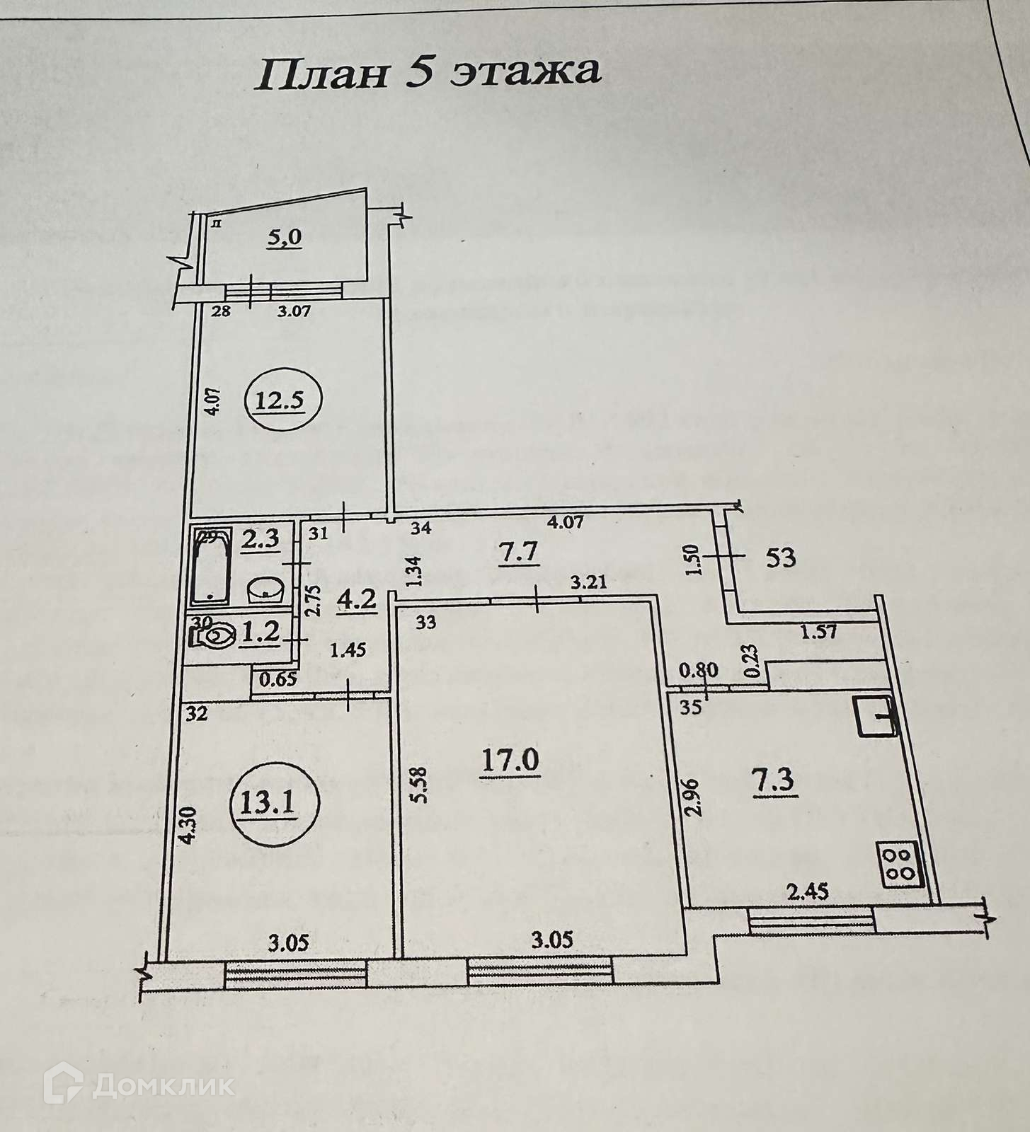 Кухня 7,3 кв.м, три раздельные комнаты 12,5 кв.м., 13 кв.м., 17 кв.м. Окна квартиры выходят на две стороны. Одна комната выходит на улицу Победы, все остальные во двор.