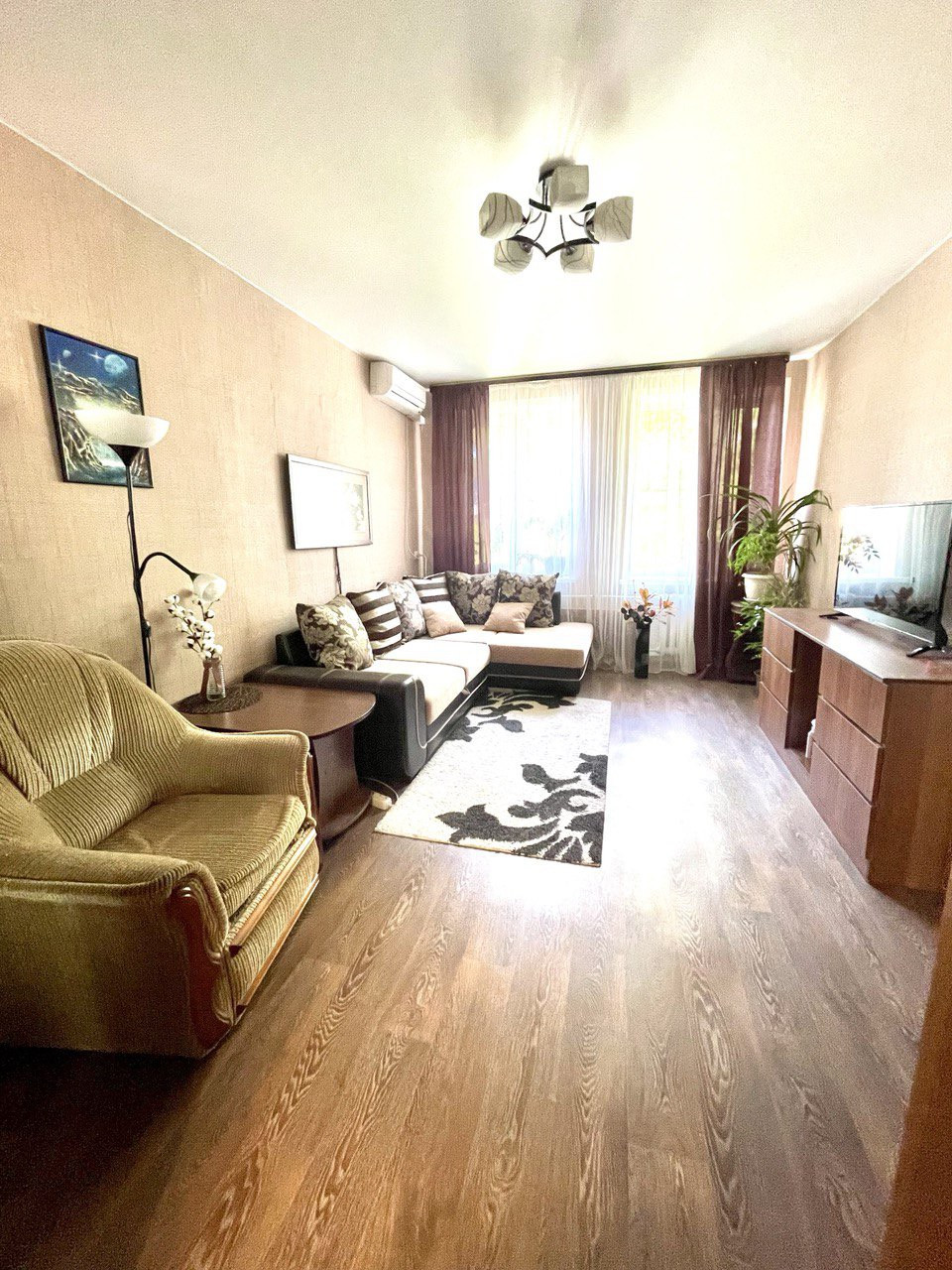 Продается уютная ,  теплая , светлая 2х комнатная квартира , общей площадью 46 м2. Состояние - заехать и жить ! Альтернатива дорогим ЖК , в центре города для спокойной и комфортной жизни. Сделан хороший современный ремонт , окна - пластиковые , на полу качественный линолеум , в гостиной есть кондиционер . Ванная и туалет совмещенные. Развитая инфраструктура.