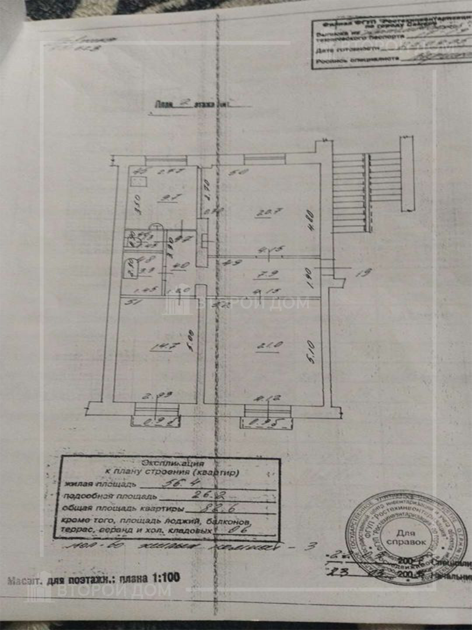 Жилая площадь 56.4 м2
