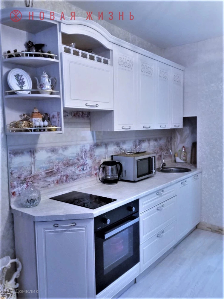 Площади: жилая комната - 18 кв.м., кухня – 14,5 кв.м. Большая кухня-гостиная. Плита электрическая, в доме своя котельная, балкон застеклен, на полу ламинат.