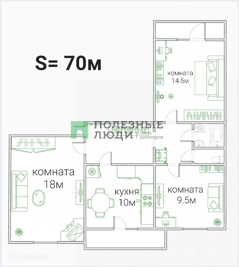 Общая площадь 70 м2