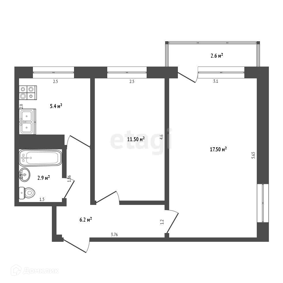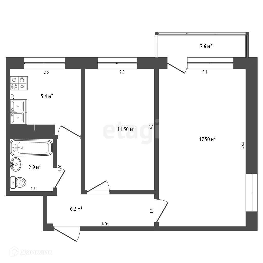 Koмнaты pаздельные 17,5 кв.м.,11,5 кв.м., куxня 5,4 кв.м.