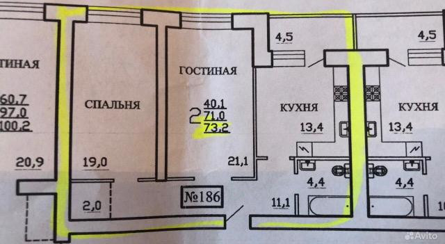 Общая площадь 73.2 м2