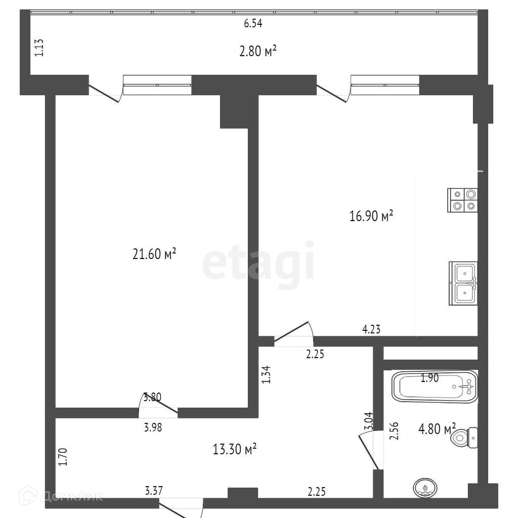 - Высота потолков: 2.6 м