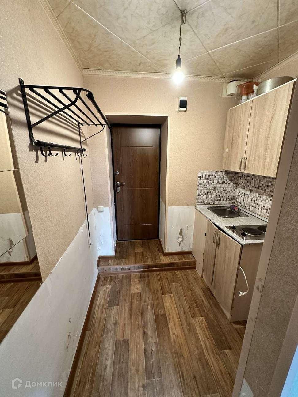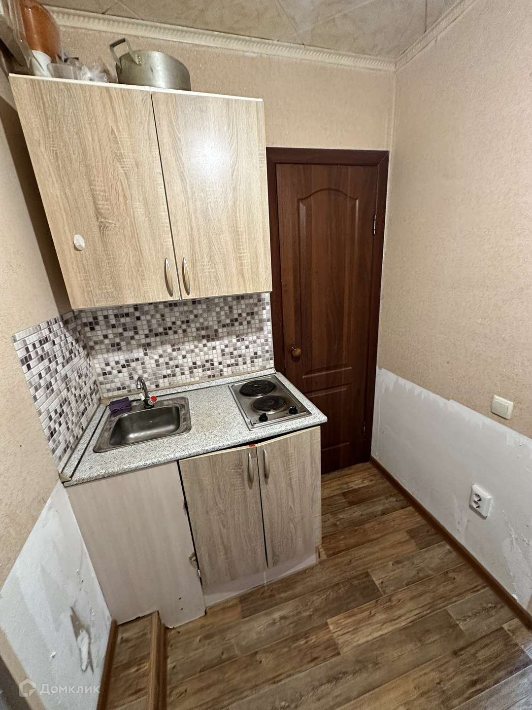 В комнате комод, диван, шкаф, холодильник, кухонный гарнитур, электроплита- останется при продаже новым собственникам.