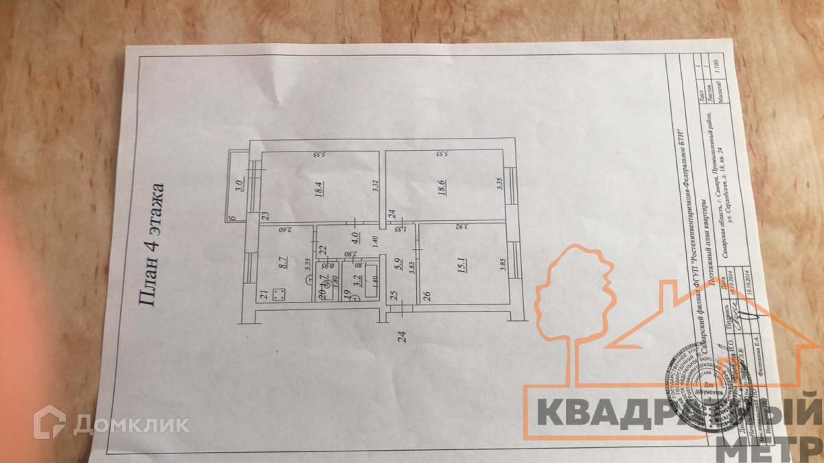 3-комнатная квартира, 75.6 м2, этаж 4 / 4, на продажу в Самаре, Сердобская улица, 18