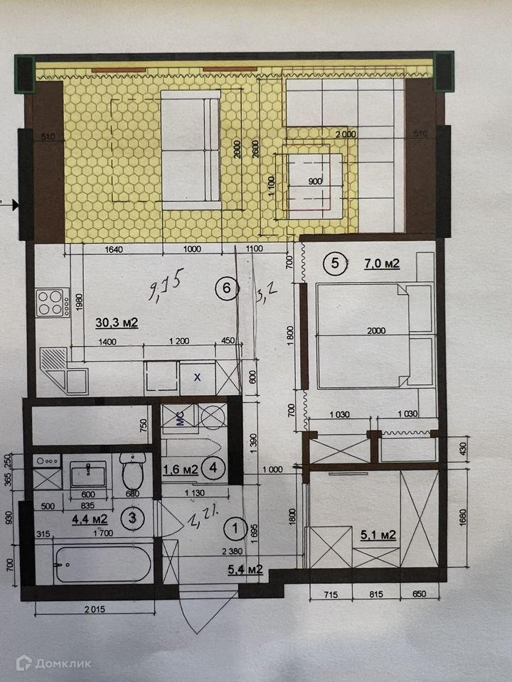 Общая площадь 54 м2