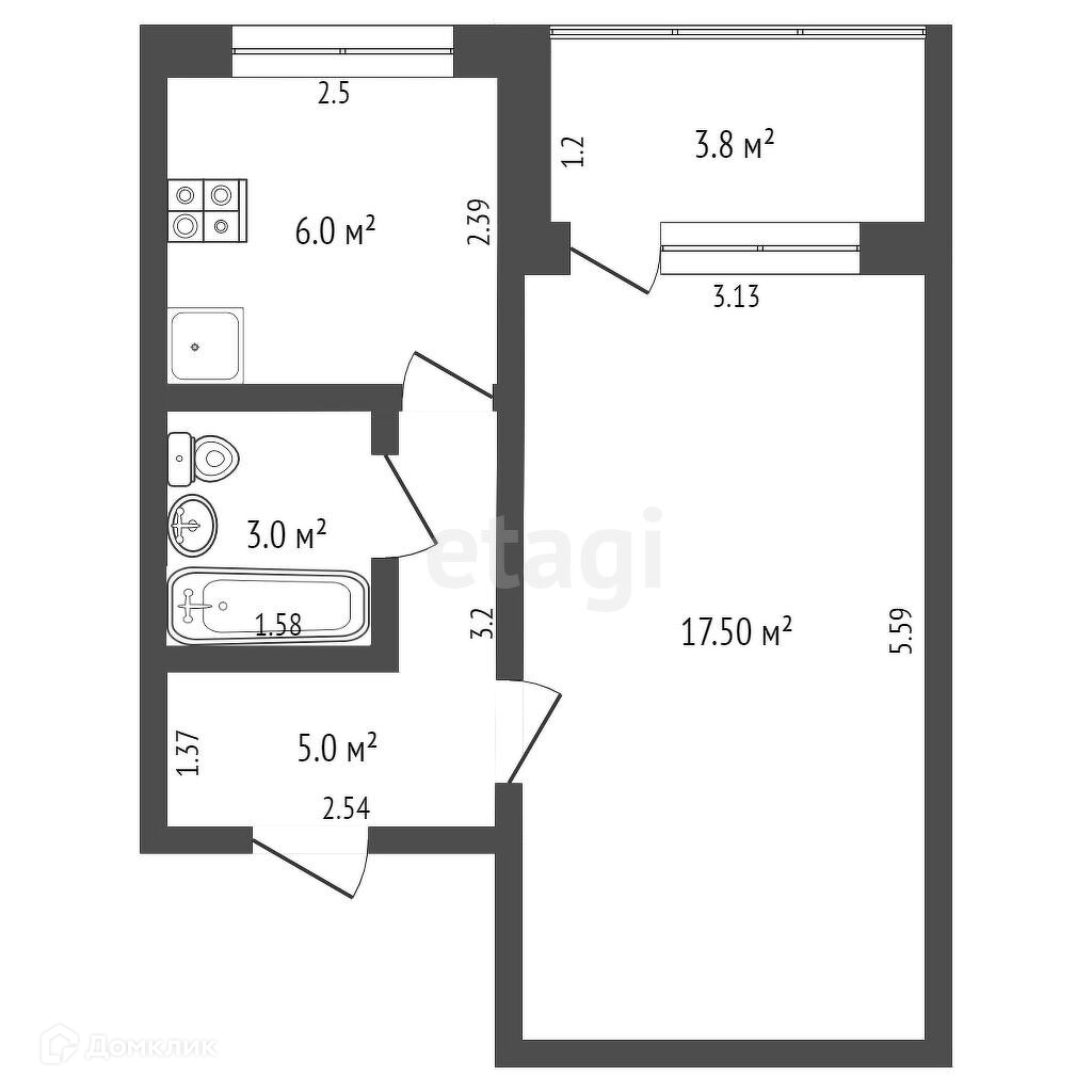 Общая площадь 33.4 м2