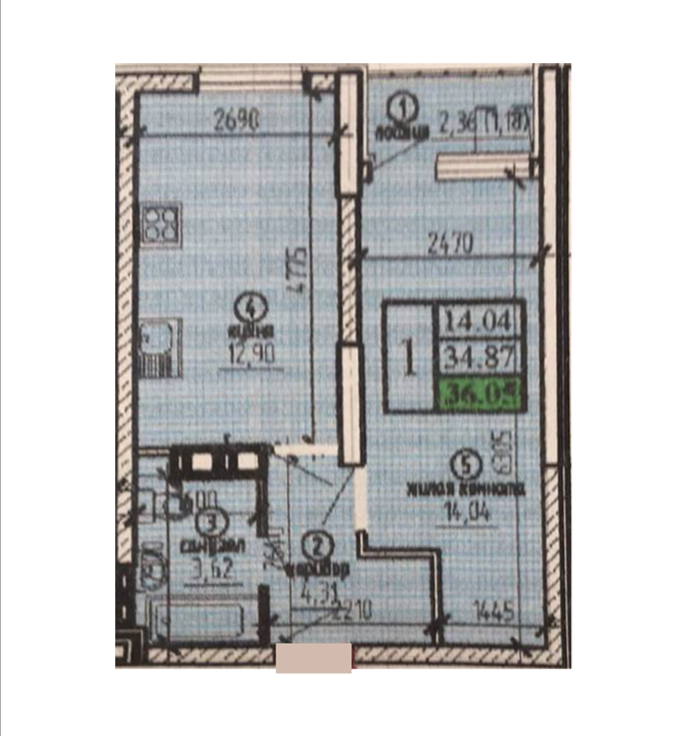Общая площадь 36 м2