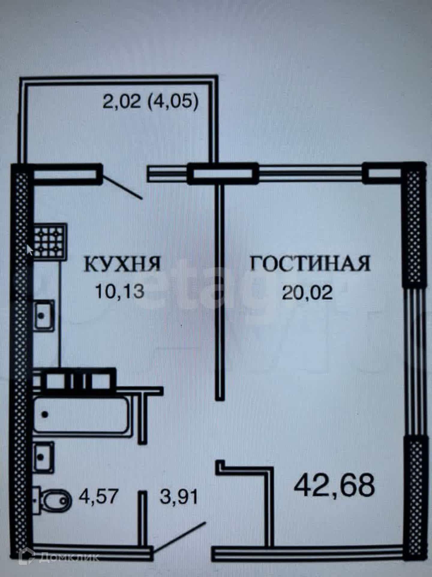 Общая площадь 42.7 м2