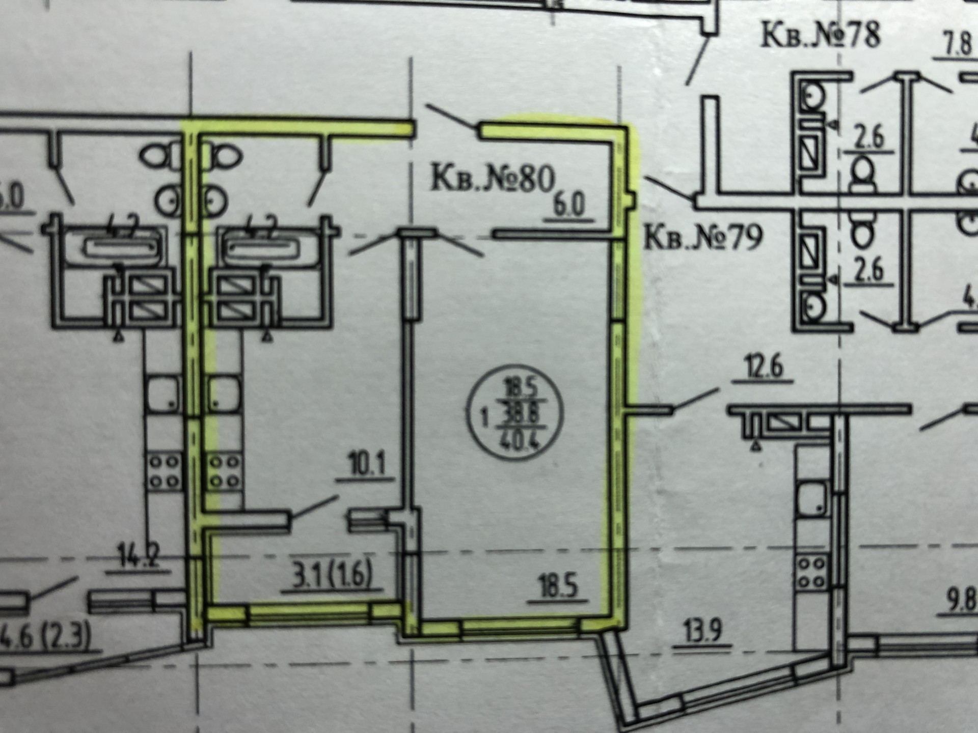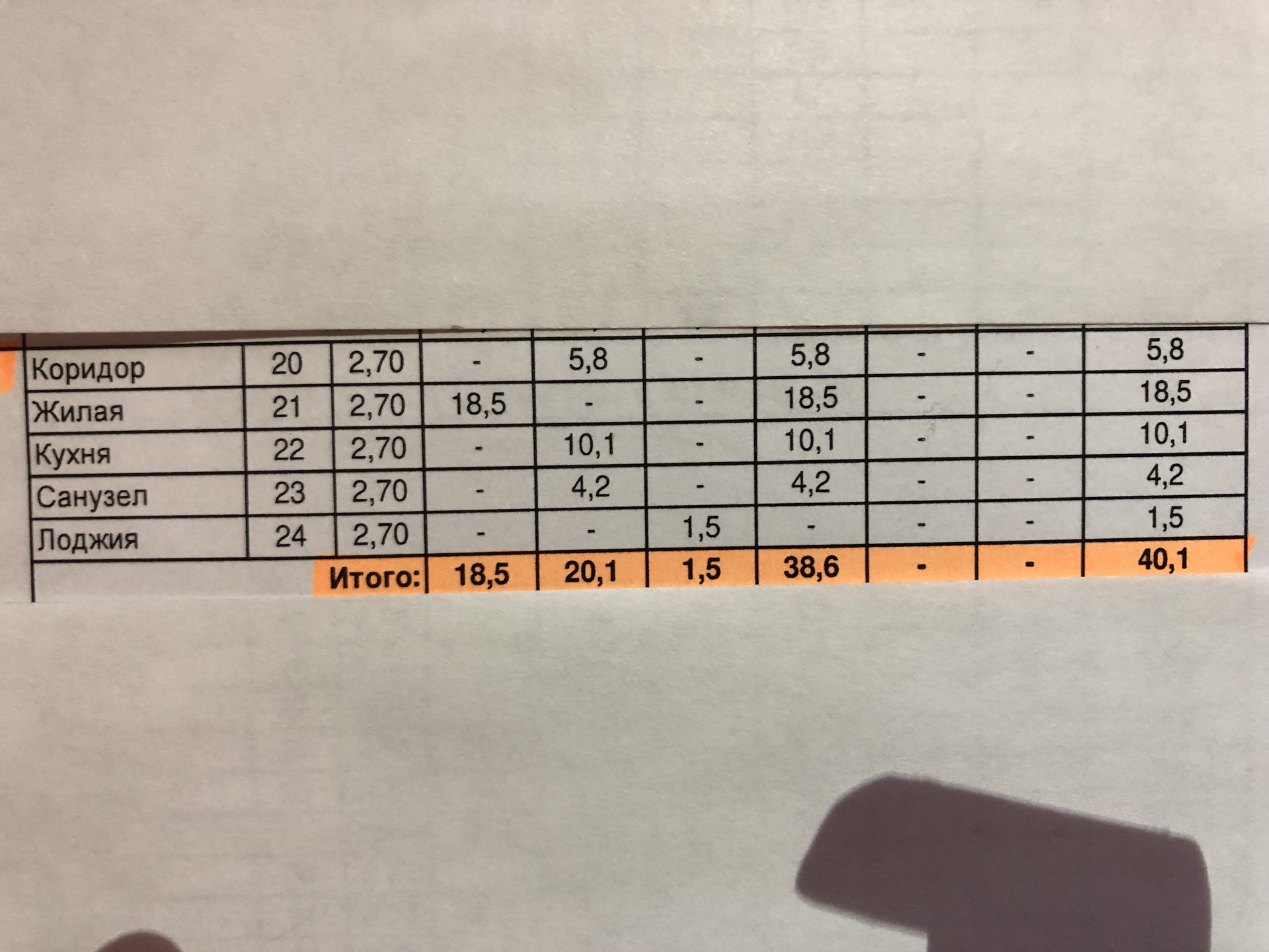 Общая площадь 40.1 м2