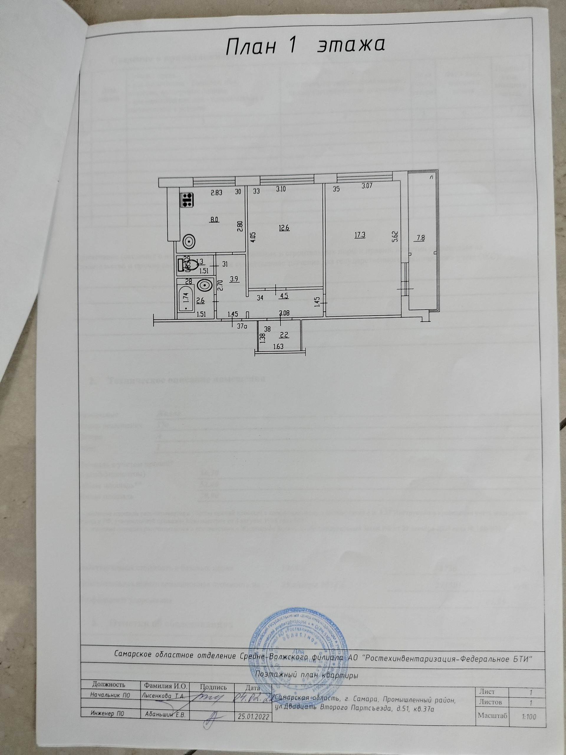 2-комнатная квартира, 52.4 м2, этаж 1 / 9, на продажу в Самаре, улица 22-го Партсъезда, 51