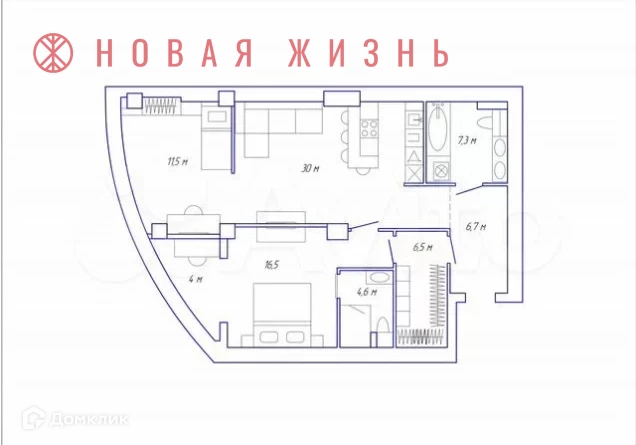 Общая площадь 95 м2