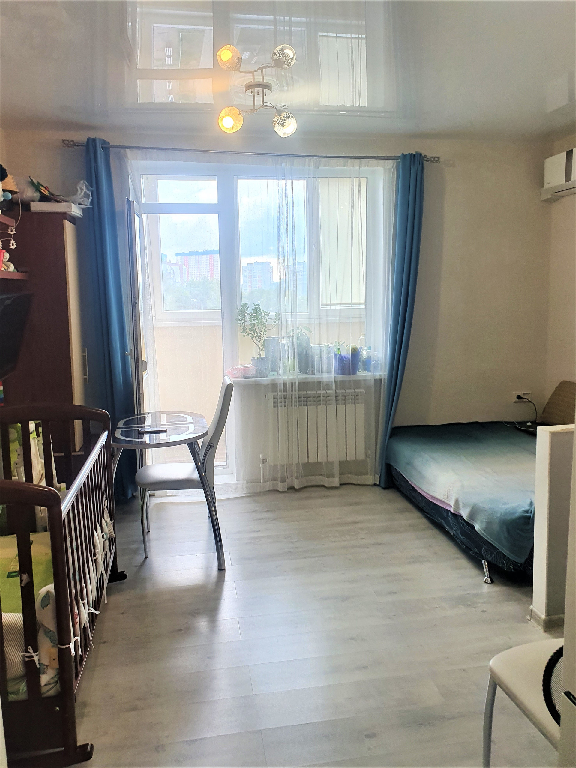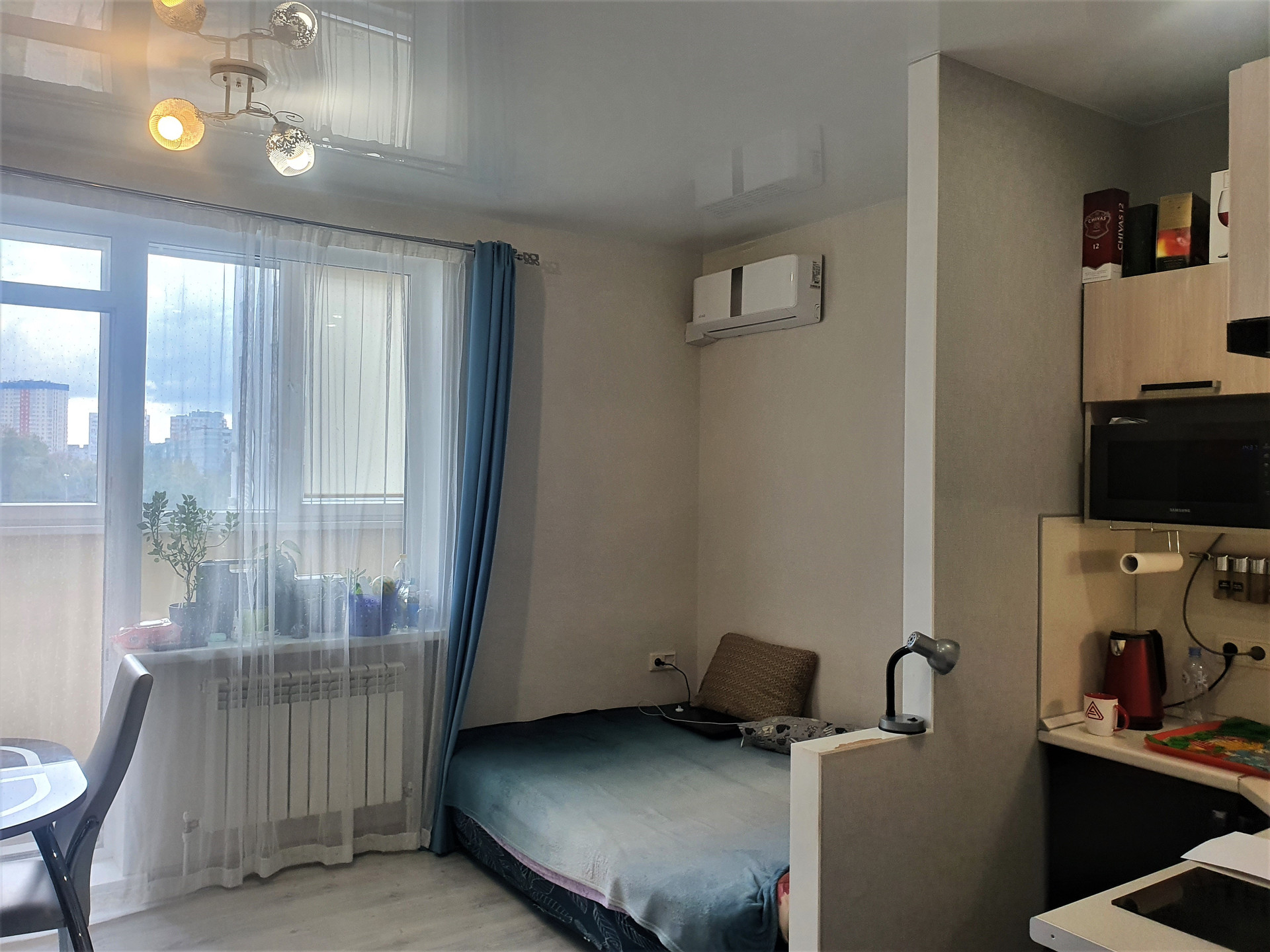 Продам светлую и очень теплую квартиру-студию на 4 этаже в ЖК "Олимпия Парк". Квартира на солнечную сторону. Общая площадь квартиры с лоджией - 33 кв.м. Высота потолка 2,8 кв.м. Подъезды в доме с двух сторон, дом 2018 года. В квартире сделан современный, качественный ремонт, который делали для себя, натяжной потолок, теплый пол, на балконе утеплен пол, в комнате ламинат, в санузле и в коридоре на полу плитка. Установлена качественная сантехника. В квартире остается: кондиционер, кухонный гарнитур, вытяжка, варочная поверхность, шкафы в коридоре, пенал в комнате, в ванной остается: умывальник со шкафчиками, зеркало с полками, пенал, все светильники и люстры, и бра на балконе, сушилка для белья потолочная. Отличный развитый район: в шаговой доступности детские сады и школы, поликлиника, остановки общественного транспорта, ТЦ, фитнес центр, рынок, магазины, аптека спортивный зал, в соседнем доме магазин пятерочка. Централизованное отопление, своя котельная на крыше, два пассажирских и один грузовой лифт. В договоре указываем всю сумму. Квартира без долгов и обременений. Развитая транспортная развязка в любую точку города. Общая площадь квартиры 33 кв.м. лоджия 5 кв.м.(4,2 на 1,2), жилая площадь 18,9 кв.м. (4,2 на 4,5 кв. м), коридор 7,13 кв.м (3,1 на 2,3), сан. узел совмещен 4,25 кв.м (2,5 на 1,7). Прямая продажа.