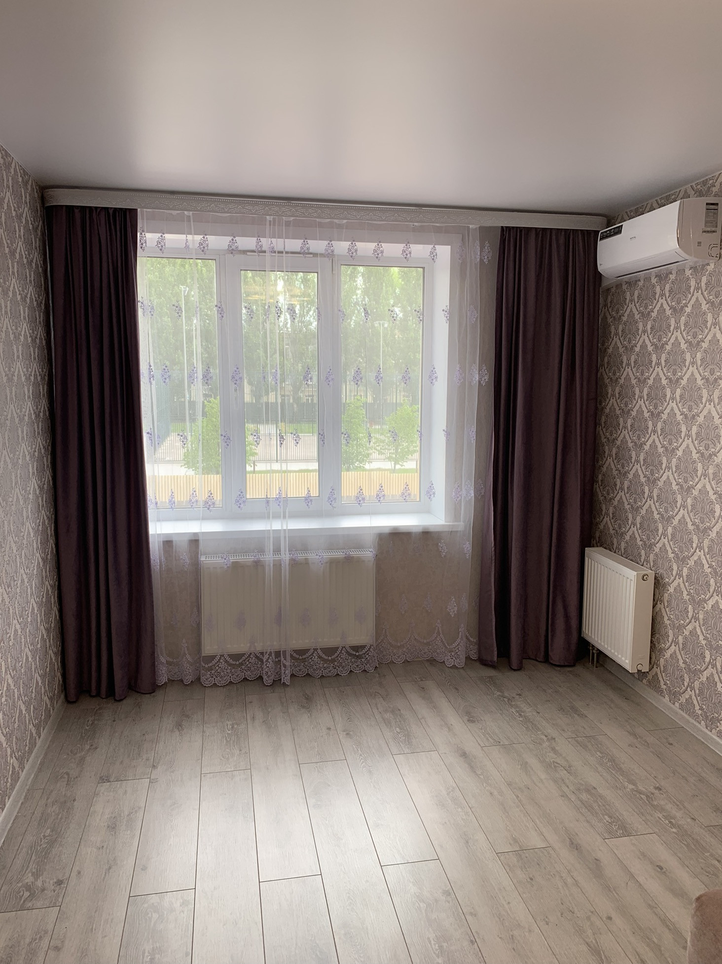 Есть кондиционер,большая гардеробная,при желании можно в комнате сделать стеклянную перегородку и будет 2 комнаты