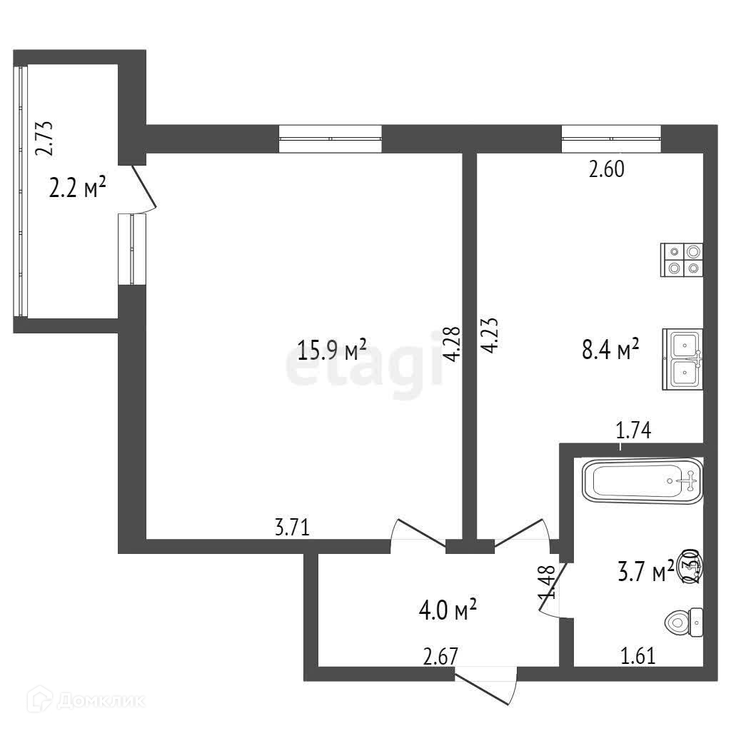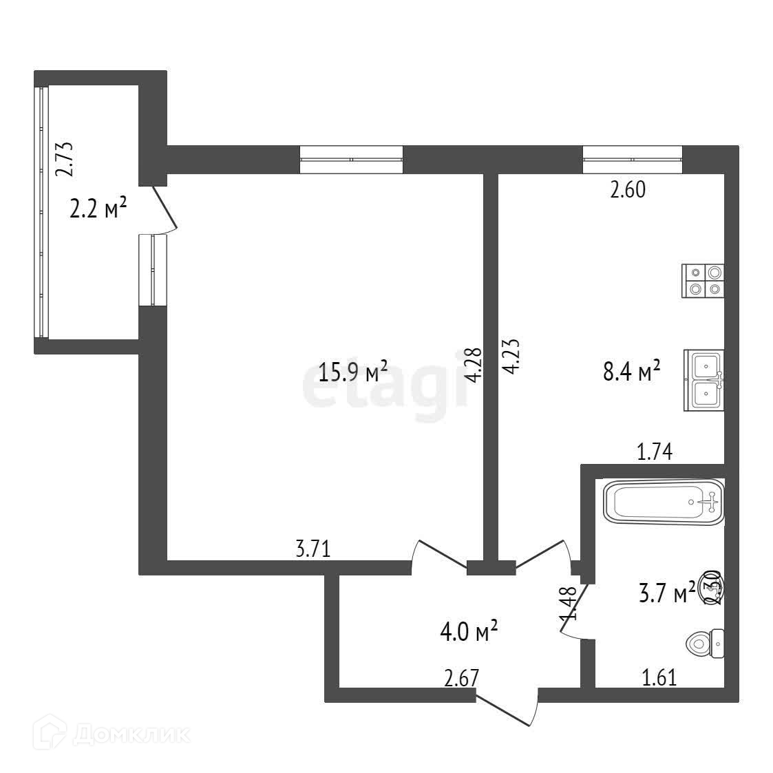 Общая площадь 33 м2